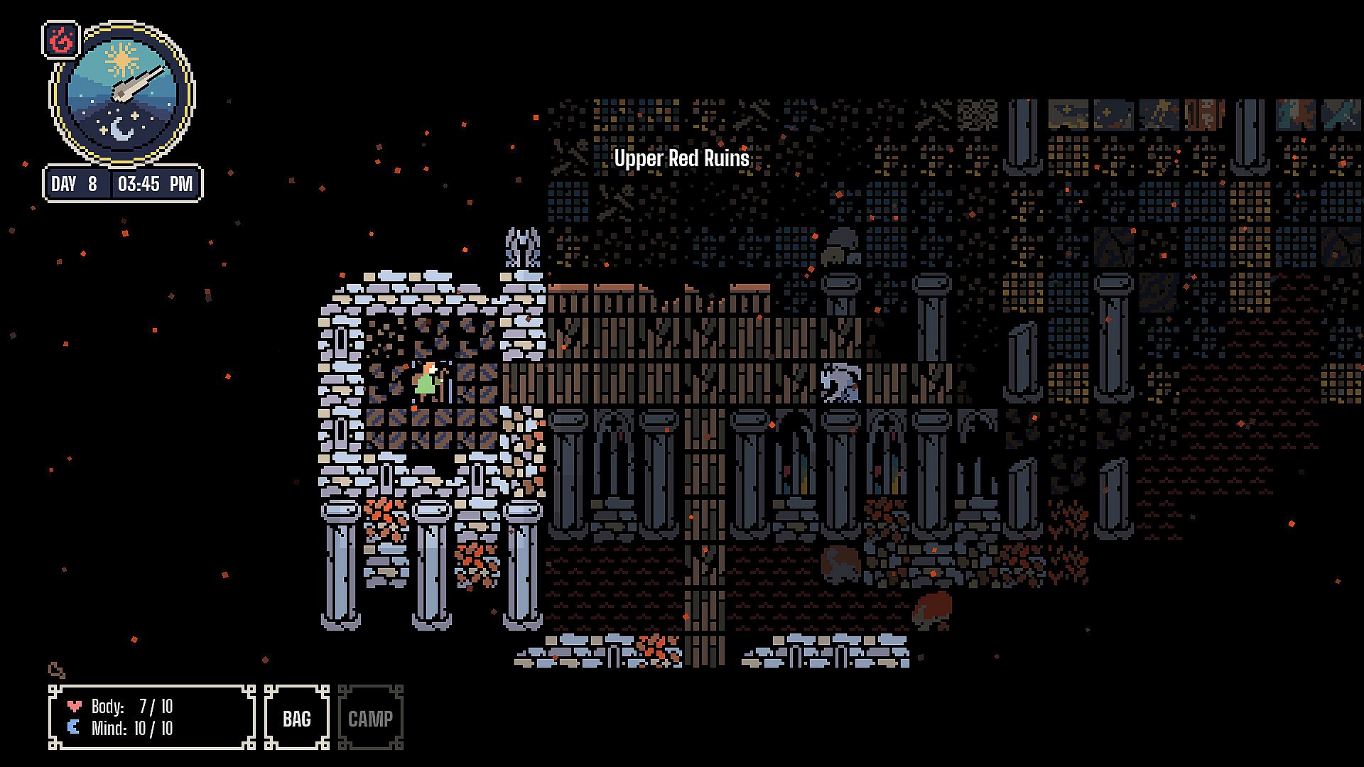 Traveller's Hymn is a top-down, grid-based, open-world adventure game. Explore, battle, and loot across the land. Talk to locals, solve their problems, and receive handsome rewards. Crumbs of the mystery behind The Valley's curse is scattered throughout the world, for you to find.