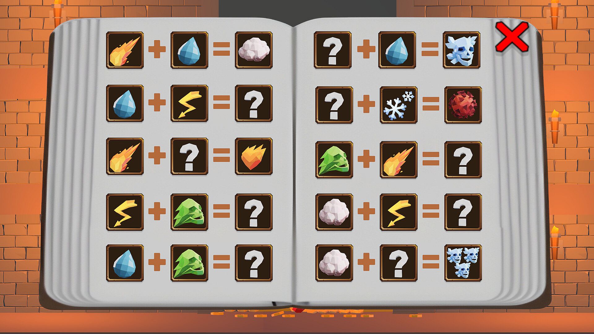 You have five elements to combine: fire, ice, poison, electricity, and water