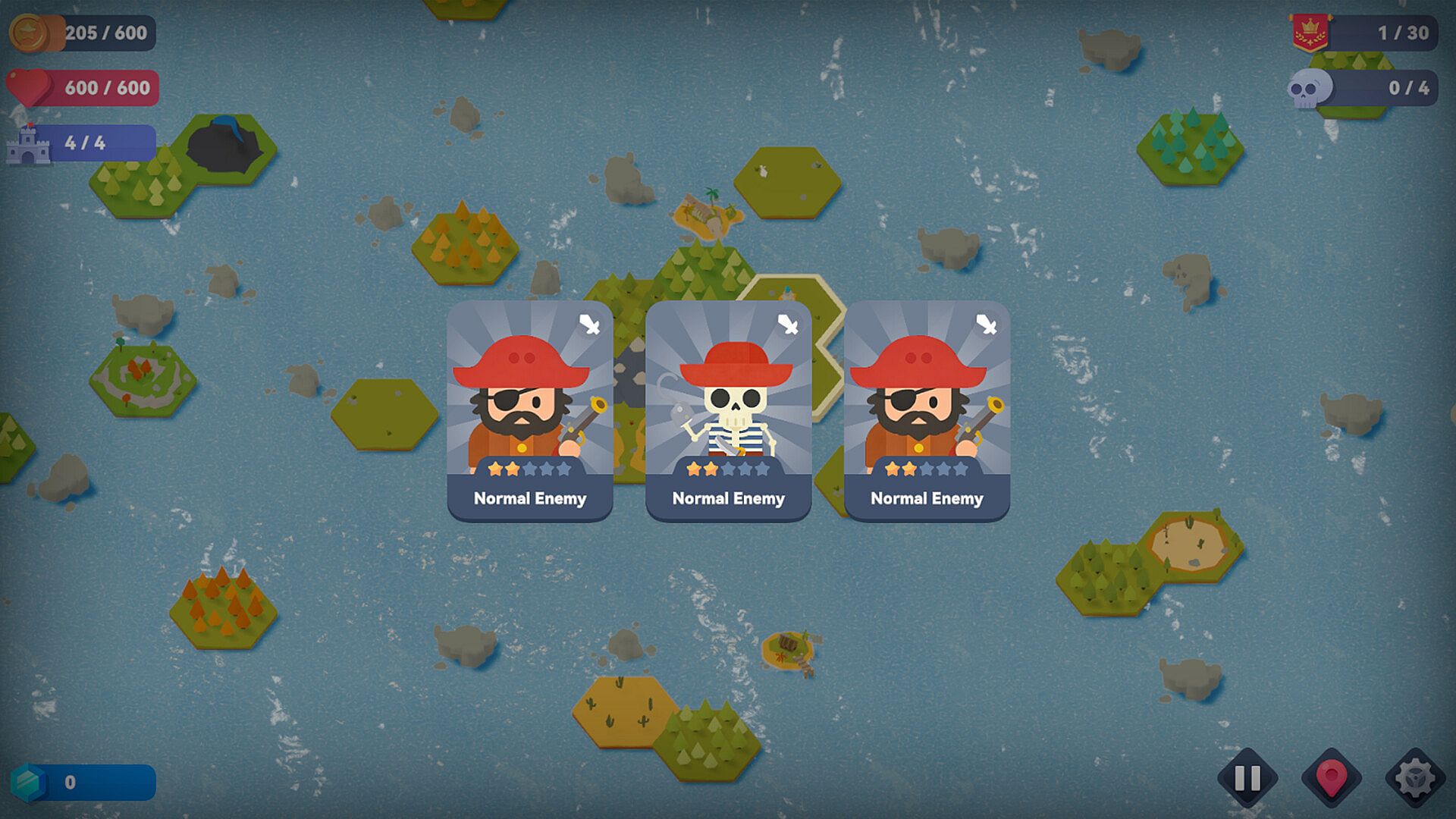 A pirate-themed tower defense + roguelite game set across hexagonal archipelagos.