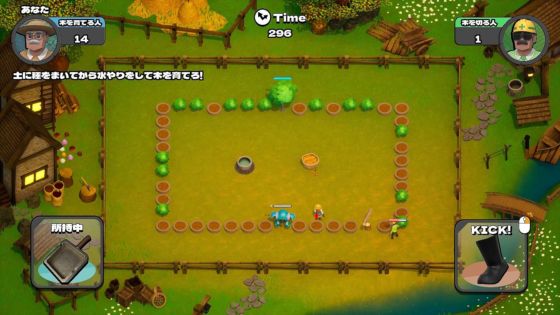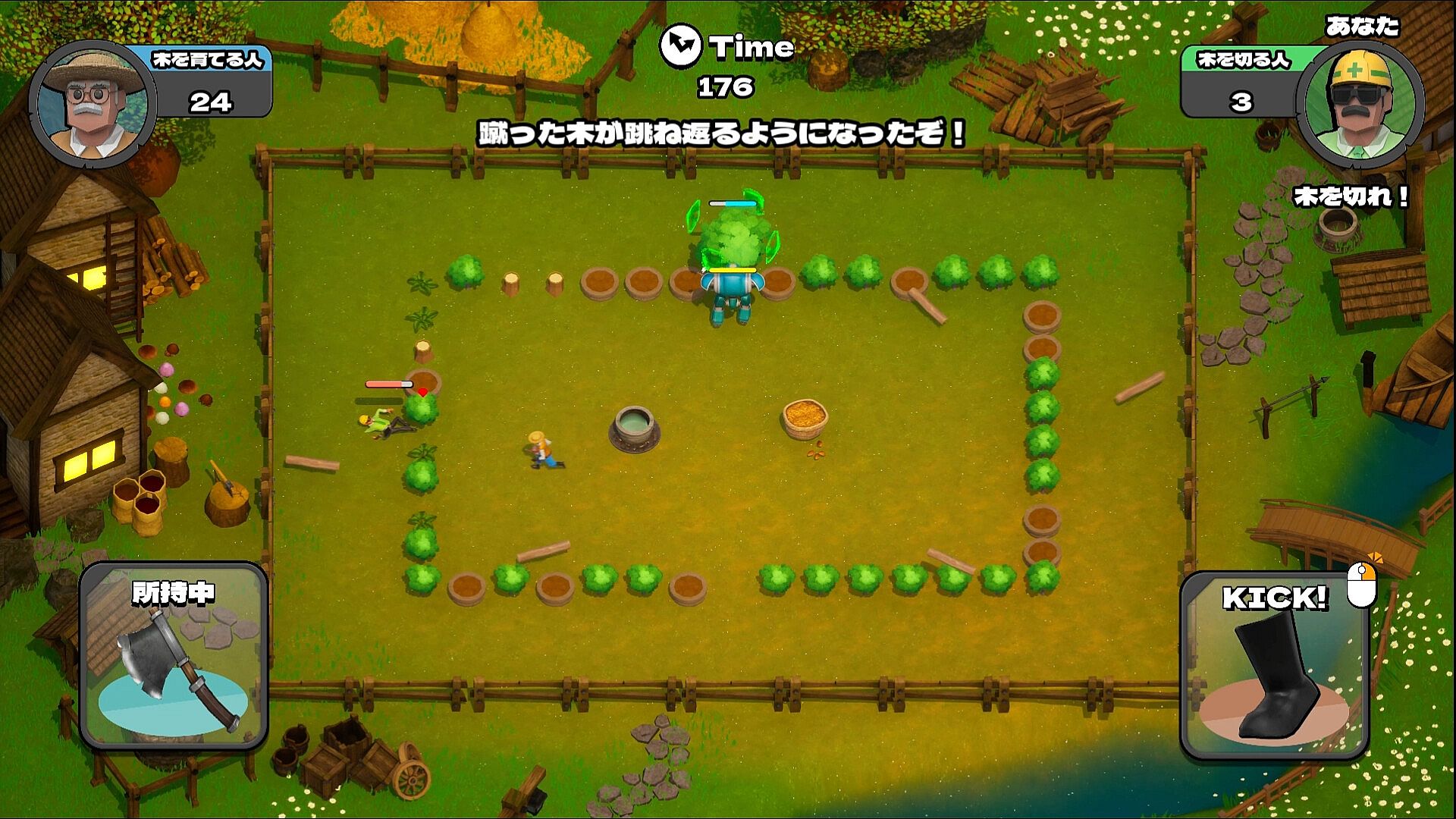 When the remaining time is less than 180 seconds, the kicking power increases! Kicked trees jump around the fence and go on a rampage.