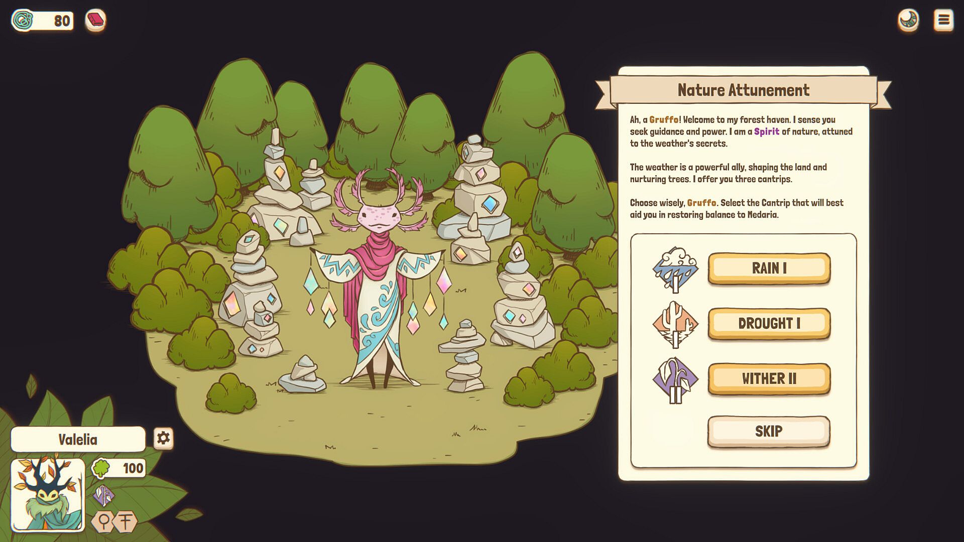 Welcome to Medaria – a land of vibrant biomes, spirits, and resilient trees. As a Gruffo, a small but wise guardian of nature, your mission is to restore balance by nurturing forests, mastering weather-shaping cantrips, and healing spirits whose powers have grown unstable.