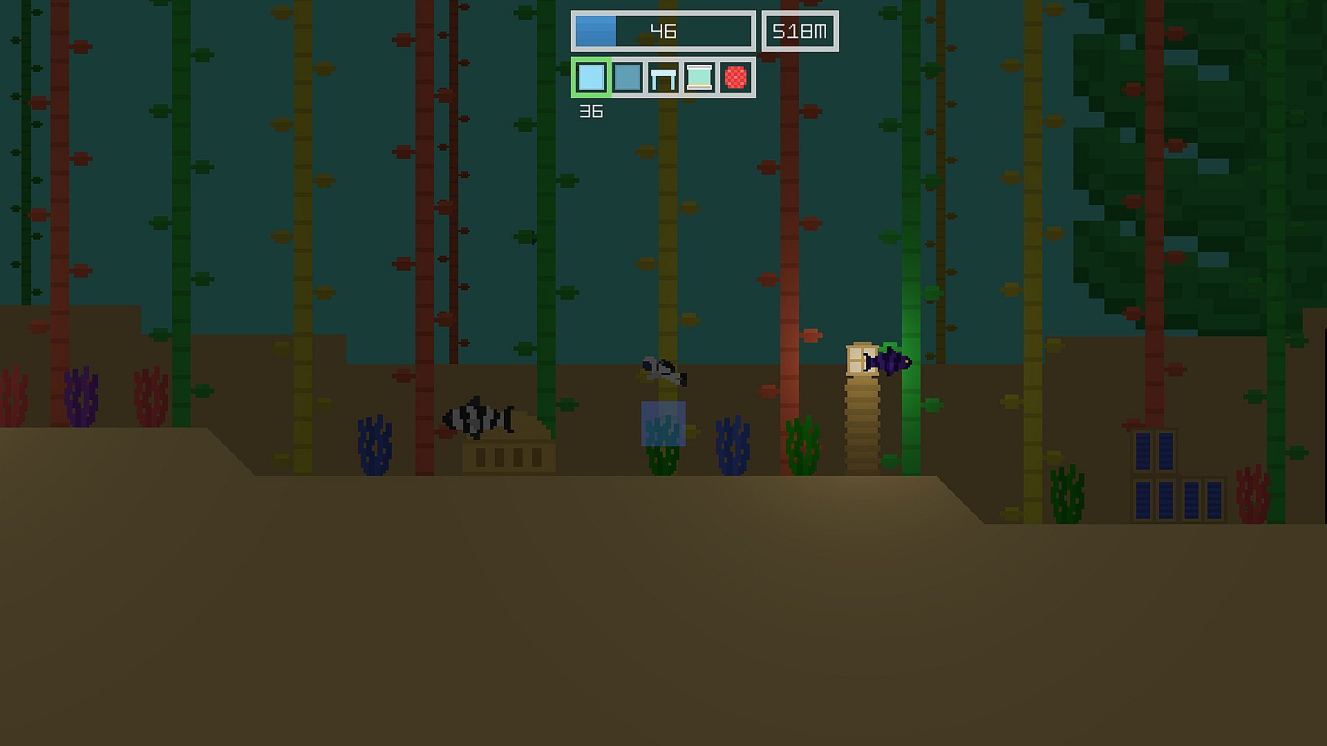 Gather building material and berries and get to farming! The more berries you have, the better you can maintain your oxygen and survive underwater longer.