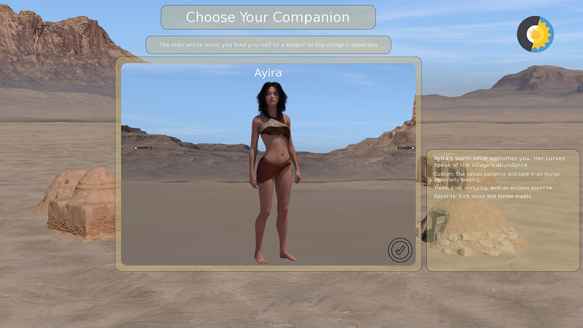 In Sun-Scorched Vows, I'm taking the next step. The game is built around the integration of AI-generated videos to bring key moments to life. From the shimmering heat haze of the desert to the subtle expressions of the characters and the flow of daily life in the village, this technology is used to create a more fluid and immersive experience than ever before. If a game isn't an experiment, it doesn't excite me, and this project is my latest passion.