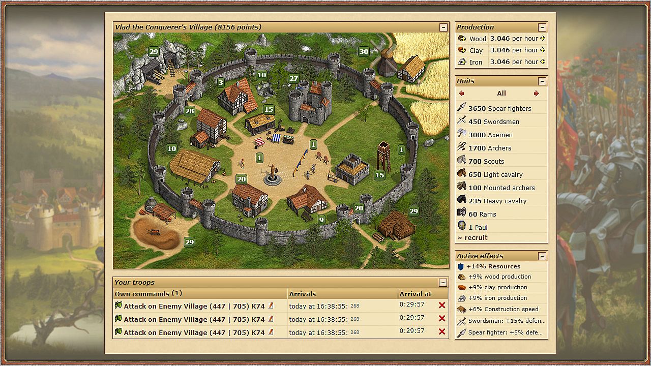 Tribal Wars is a massively-multiplayer, hardcore medieval strategy game where the winners take all, and every player is a potential enemy. Manage your village, construct formidable defenses, and raise a ferocious army in order to outgrow your enemies and plunder their resources. Assemble Tribes with other players, conduct real diplomacy with bordering leaders, and coordinate armies as a group in order to create strategic battle plans that devastate your enemies and conquer thousands of villages on the map. Servers exist as persistent worlds in real time, and only crucial decision making, long-term planning, and a watchful eye over your kingdom can secure success. Itβs conquer or be conquered; make claim the glory for yourself! The only thing you take with you to the next world is the knowledge learned in the magnificent wars of the past!