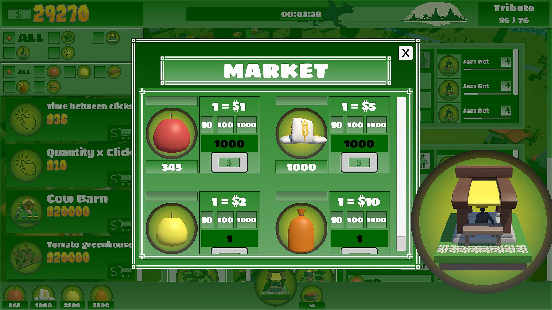 In this 2D clicker game, you'll harvest food by clicking on crops, sell your yield, hire workers, upgrade processors, and fine-tune your whole production line.