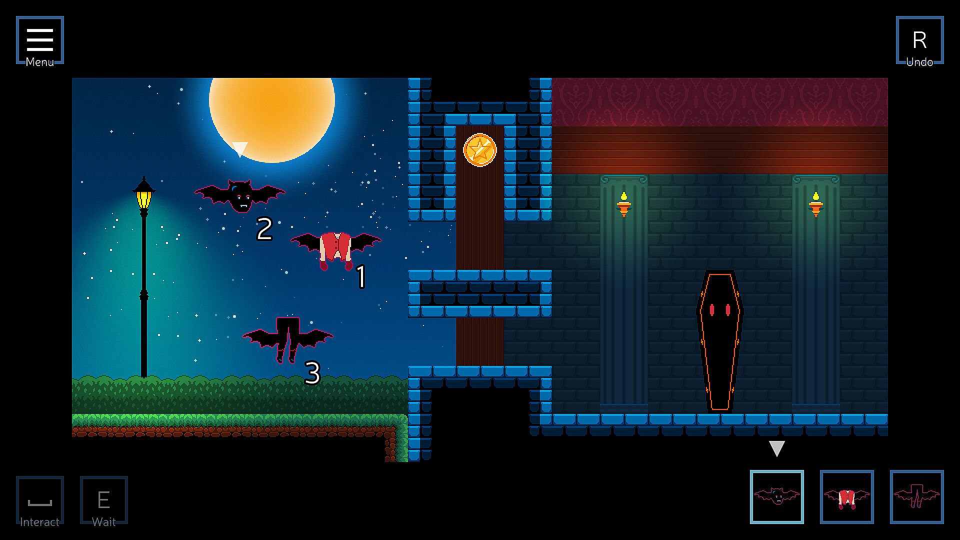 Step into the shoes of Tricula the vampire and manipulate your surroundings in a way that lets you reach your coffin. Stack pillars, fly over pits, build stairs out of rubble, deconstruct and reconstruct yourself and your obstacles.