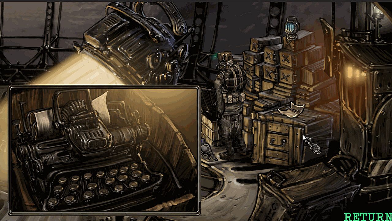 You begin the game awakening in the bowels of the airship Auberon, controlling an experimental prototype machine; you are the first true android. Your mission is unclear at first - but with the crew busy with an emergency brought about by an unexpected storm you will soon find yourself having to explore the airship and solve problems along the way. Perhaps a saboteur awaits in your midst? Only a small pigeon sent by your creator provides any real help. You are alone, for now...