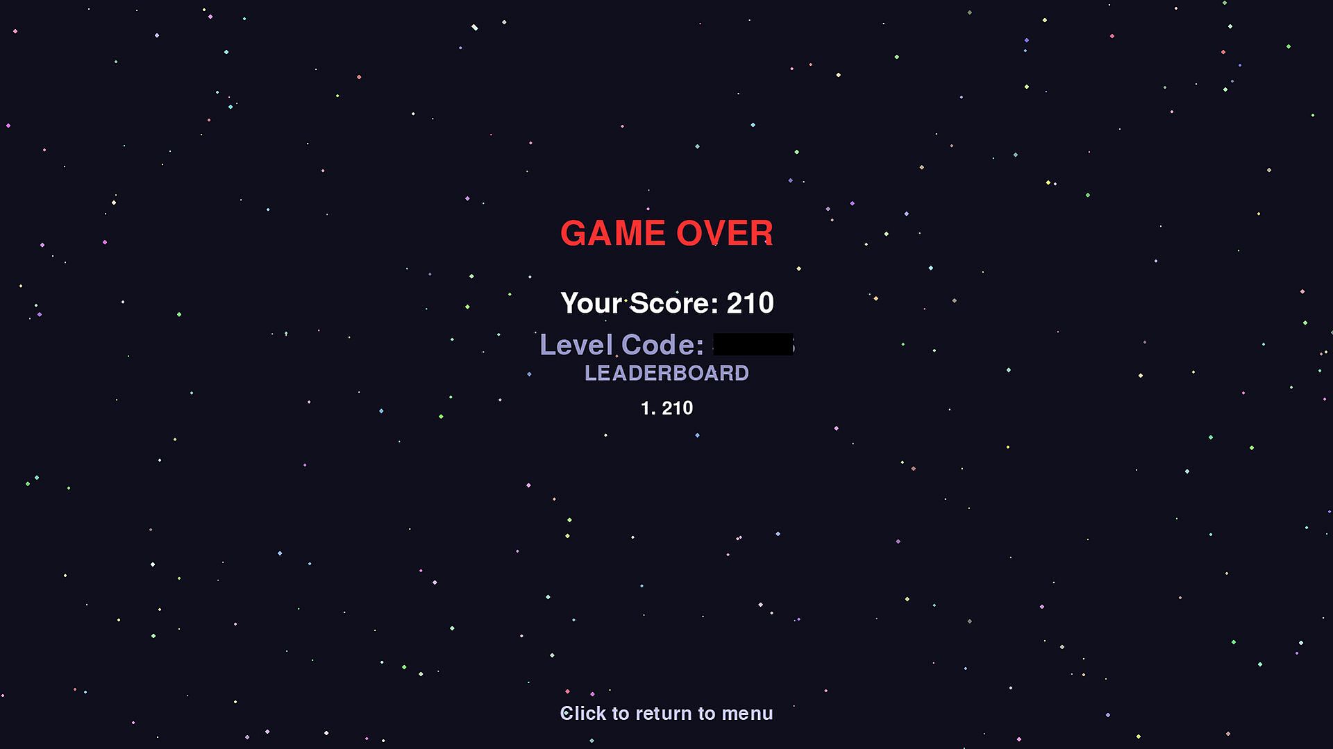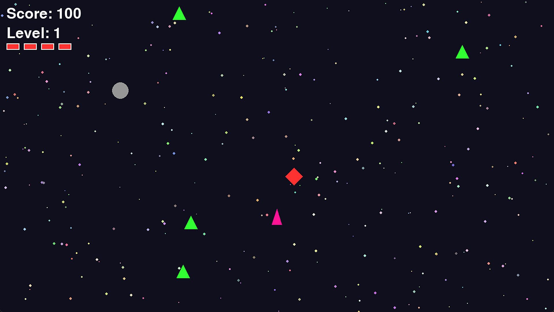 The 2D arcade vibes are back: you're a defender of the space sector assigned to you. It's not easy protecting space from red attackers. Jump in your tristar and shoot them up! This retro style arcade allows to move around with the arrow keys and use spacebar to shoot. By hitting asteroids, you get an extra life and points. Don't hit any green tristars as you will lose a life. Expect a black hole to come disrupt order once in a while, staying away from it's influence is a good idea.