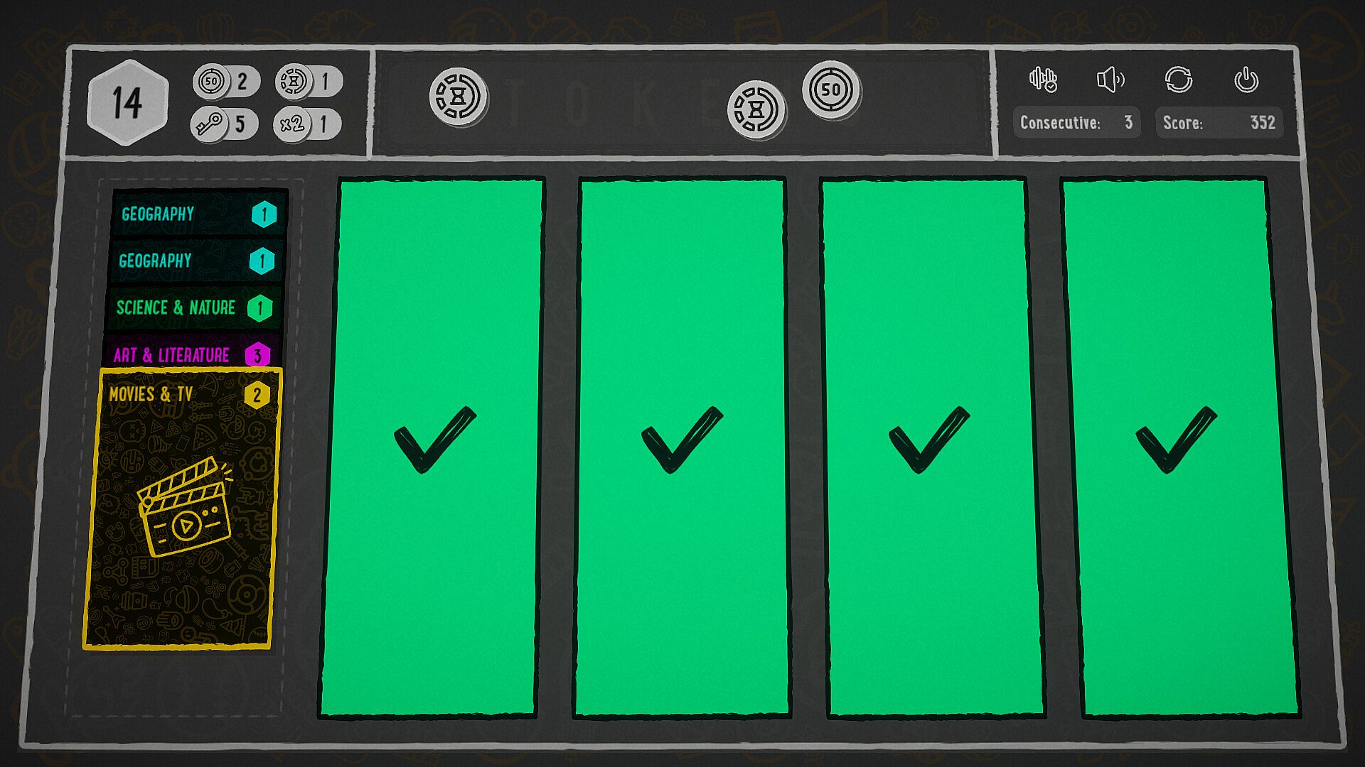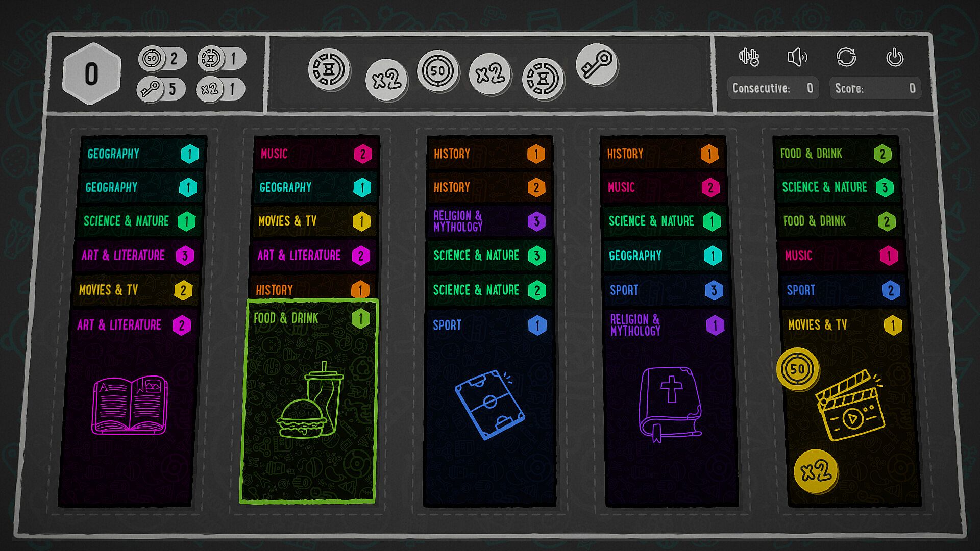 Each run is unique. Choose your path through randomised columns, optimising for well timed reward chests and categories you know best.