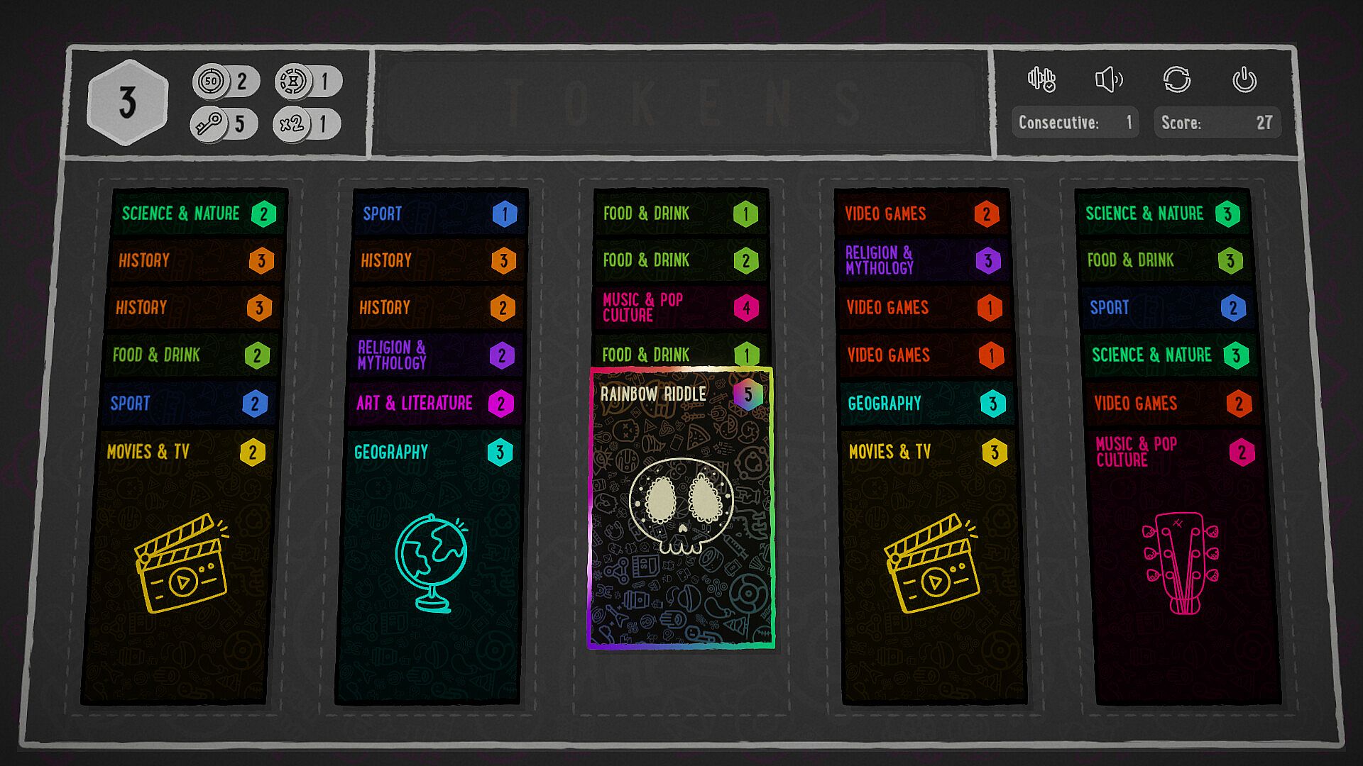Answer fast. Play smart. Use lifelines, swap cards, and relics to survive the Rainbow Reaper. Each run is unforgiving, one wrong answer can end it all. High-stakes strategy with random questions, categories, and rewards that keep every run fresh.