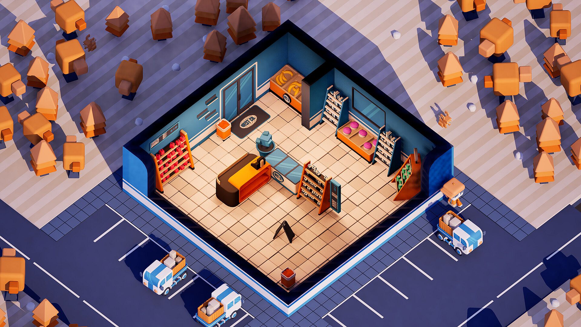Vibrant Isometric Art Style – A colorful, stylized supermarket full of life, movement, and just the right amount of chaos.