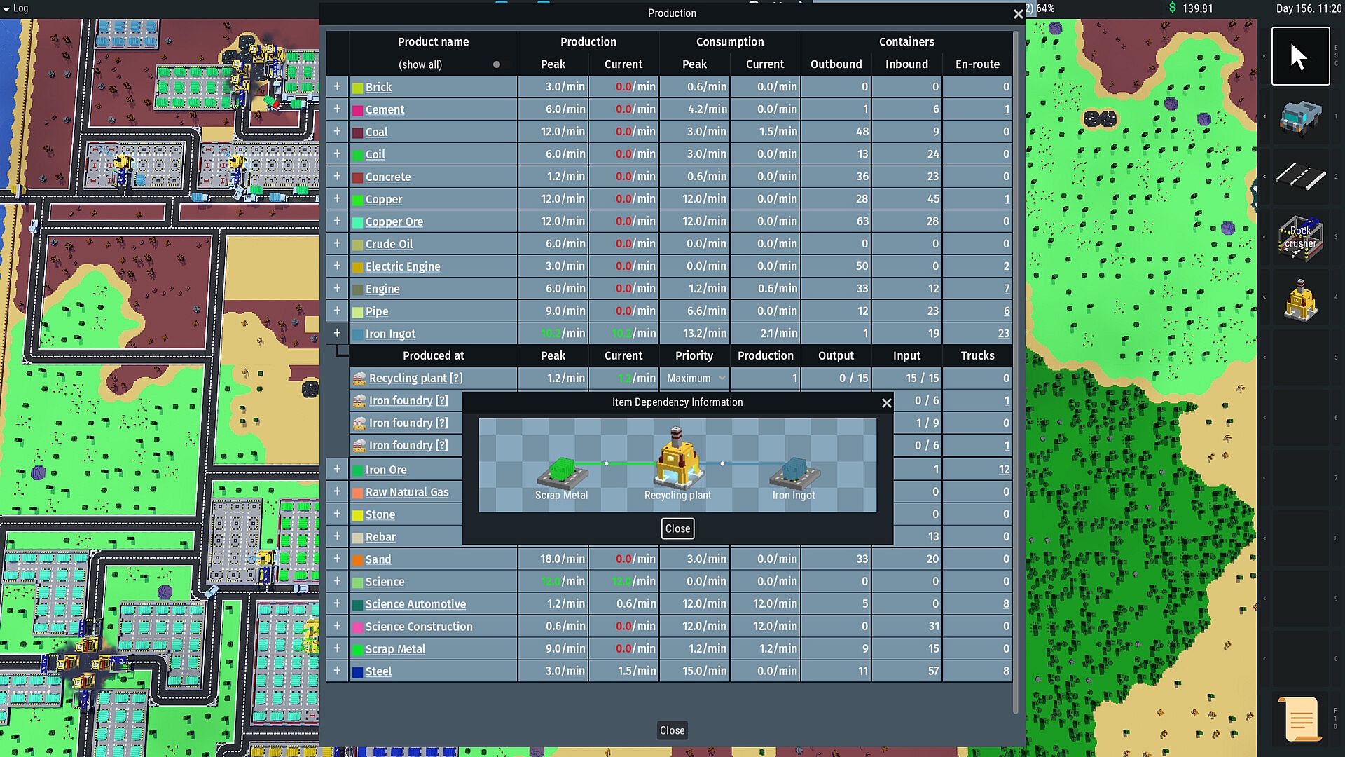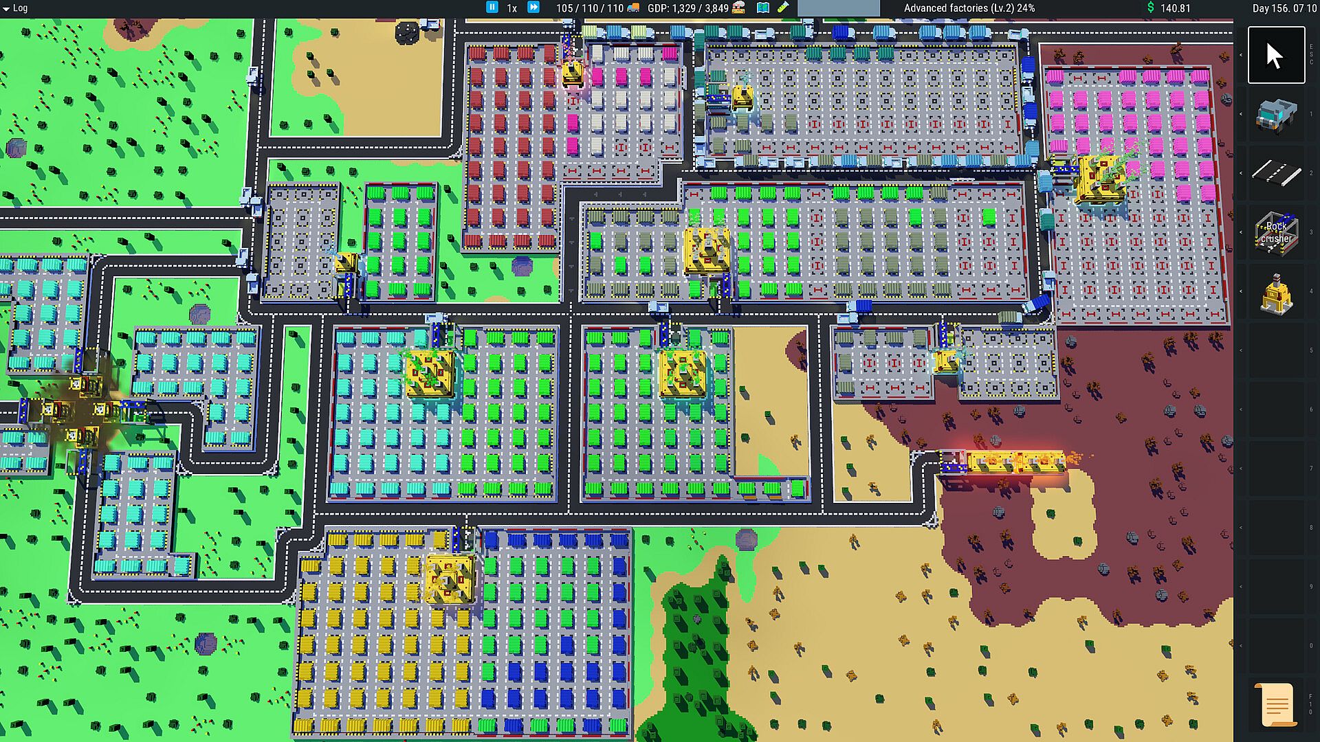 Grow your truck fleet, build your city and design a supply chain to extract, refine and process natural resources into complex items.