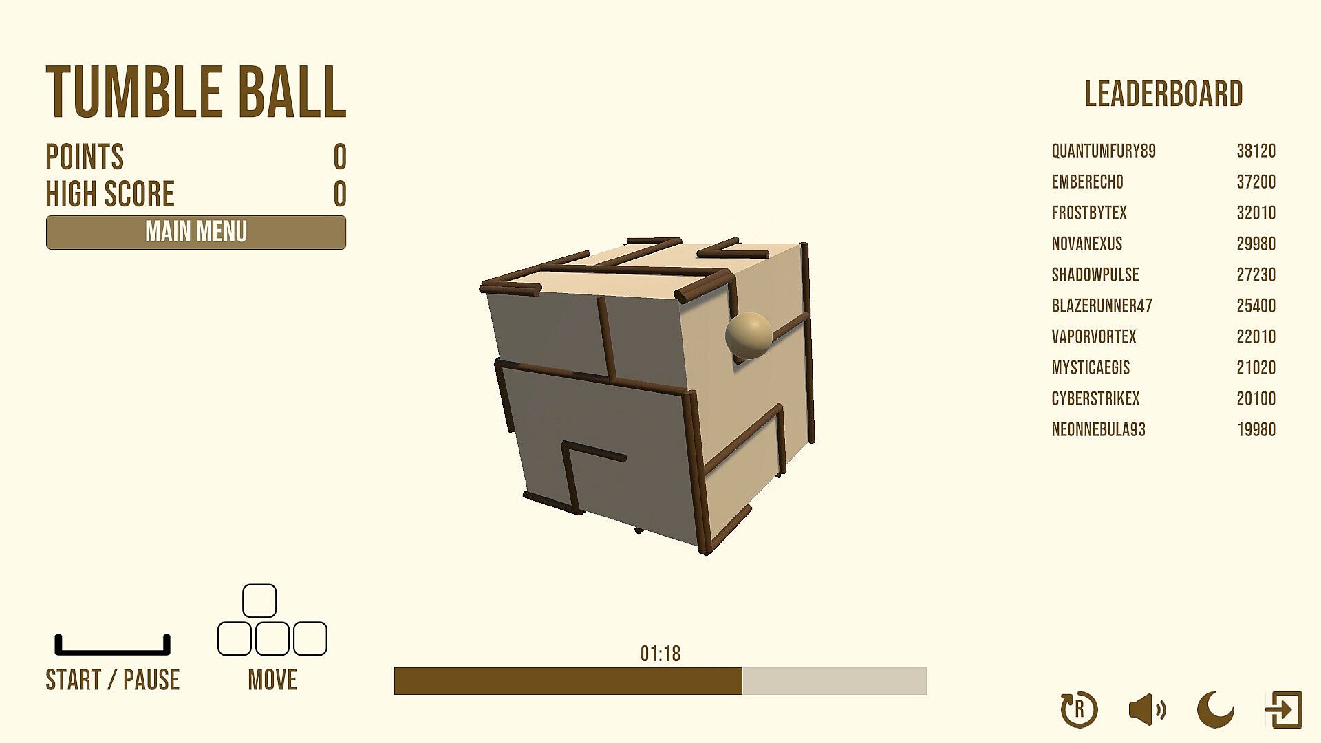 Tumble Ball is a 3D-cubic maze solver with a simple goal; find the exit.