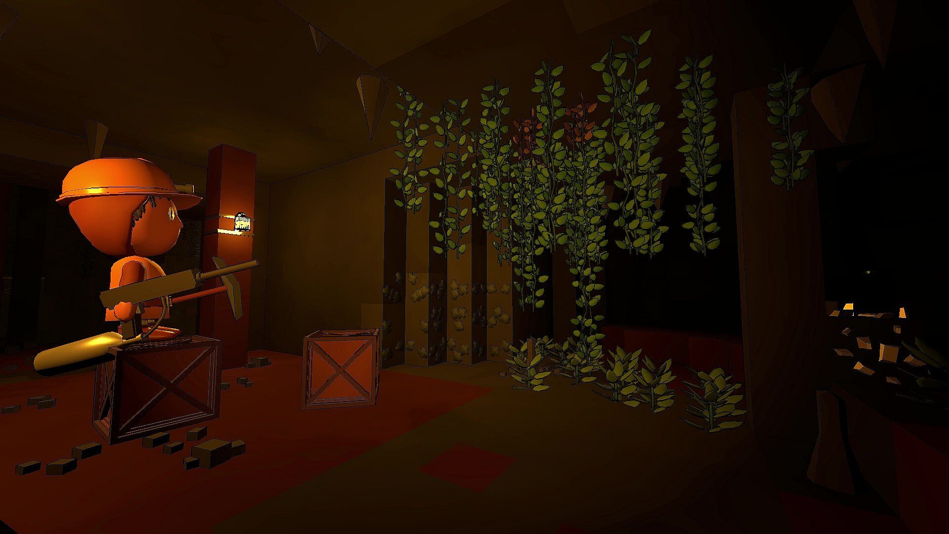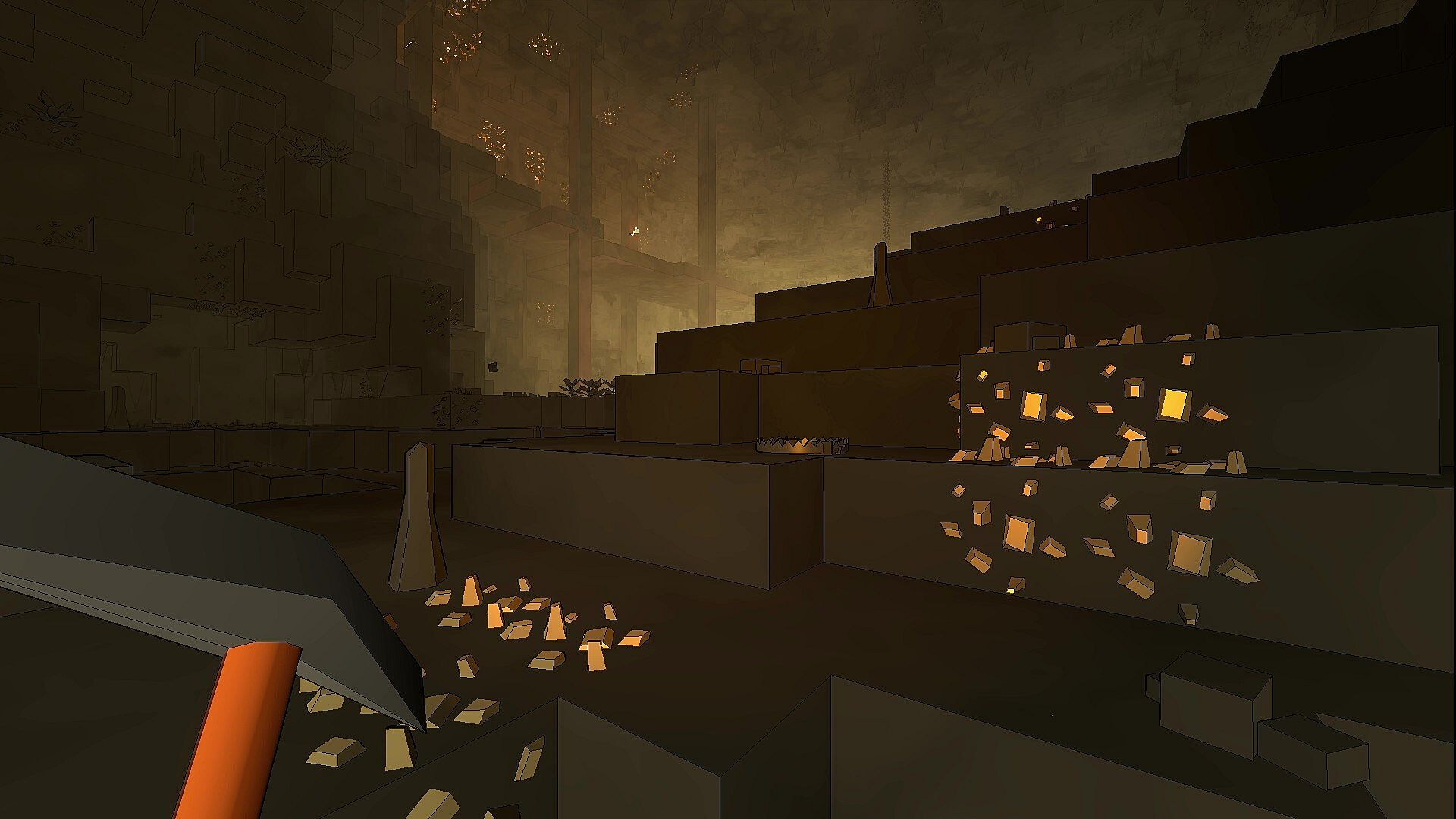 The caverns are dark and disorienting. Mark explored paths, or dig your own tunnels if necessary. Use proximity voice chat to keep in touch with your fellow miners.