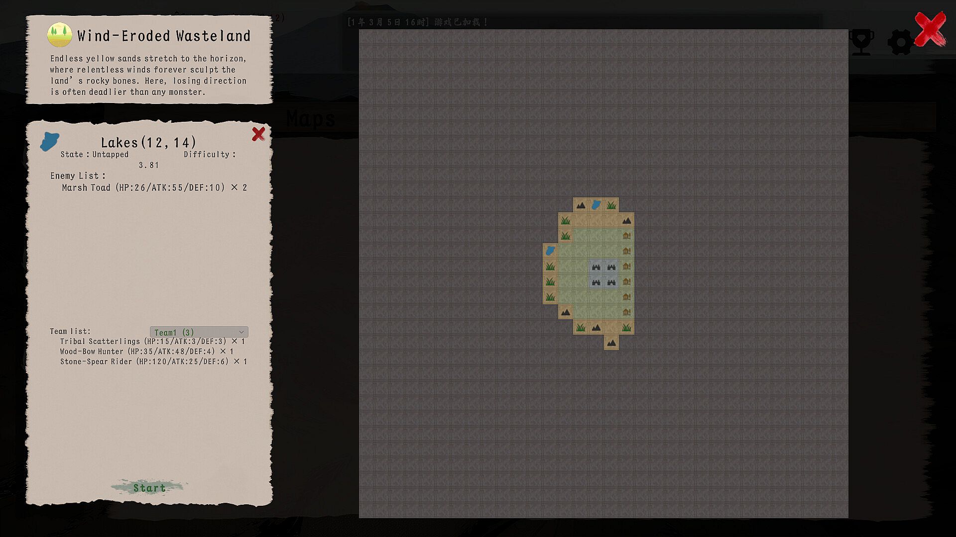 Explore an ever-expanding map, engage in battles, and unlock new regions and systems as your settlement grows.