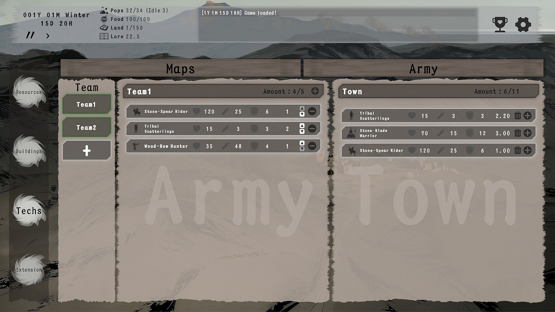 Technological progress directly affects town efficiency and combat strength