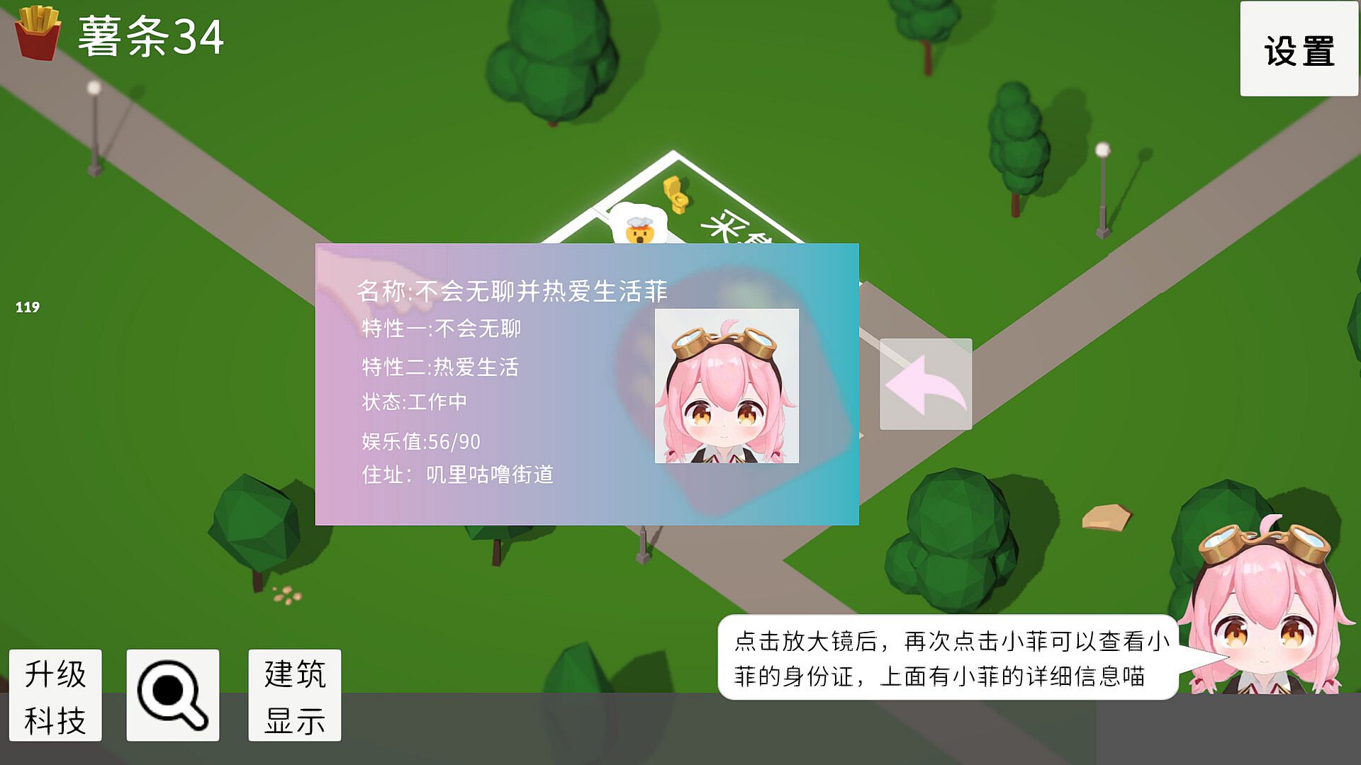 在游戏中不停的升级小菲镇,升级小镇就可以建造更多的建筑,从而增加小菲的就业机会,毕竟小菲的价值就是不停的工作。尝试升级到满级来把小菲镇建造成超级小镇!