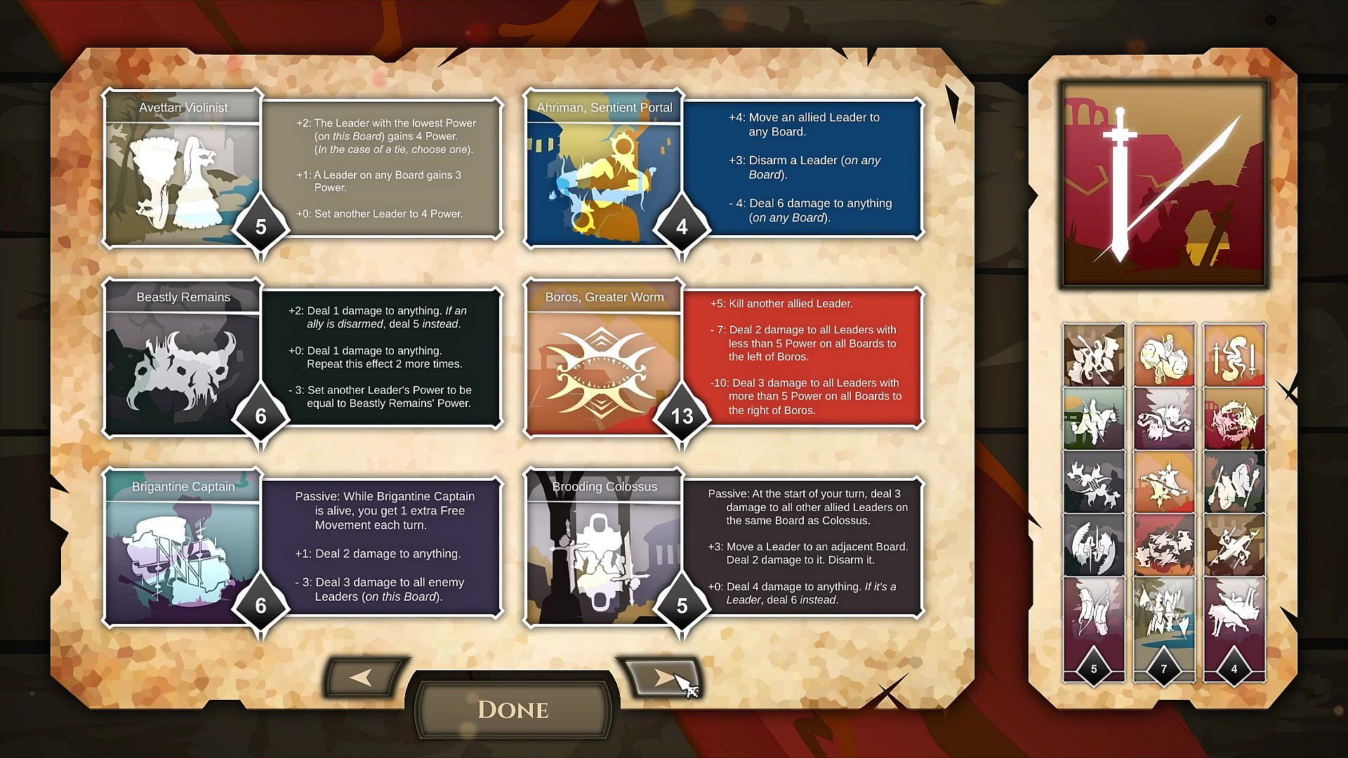 Each Leader has a unique set of abilities, constantly waging battle as they die and resurrect from the Afterlife. Using multiple Leaders in combination leads to horrifically broken, game-ending combos.