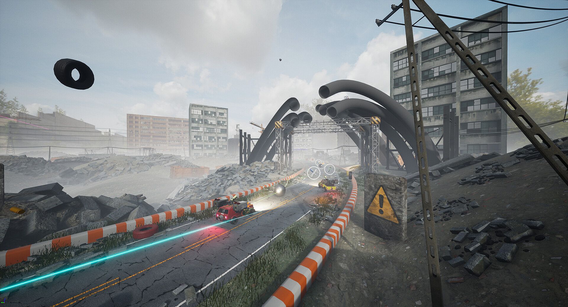 * 5 diverse maps - races take place around the world. Rush through wasteland deserts, freezing glaciers, toxic countryside, city construction sites and breathtaking islands.