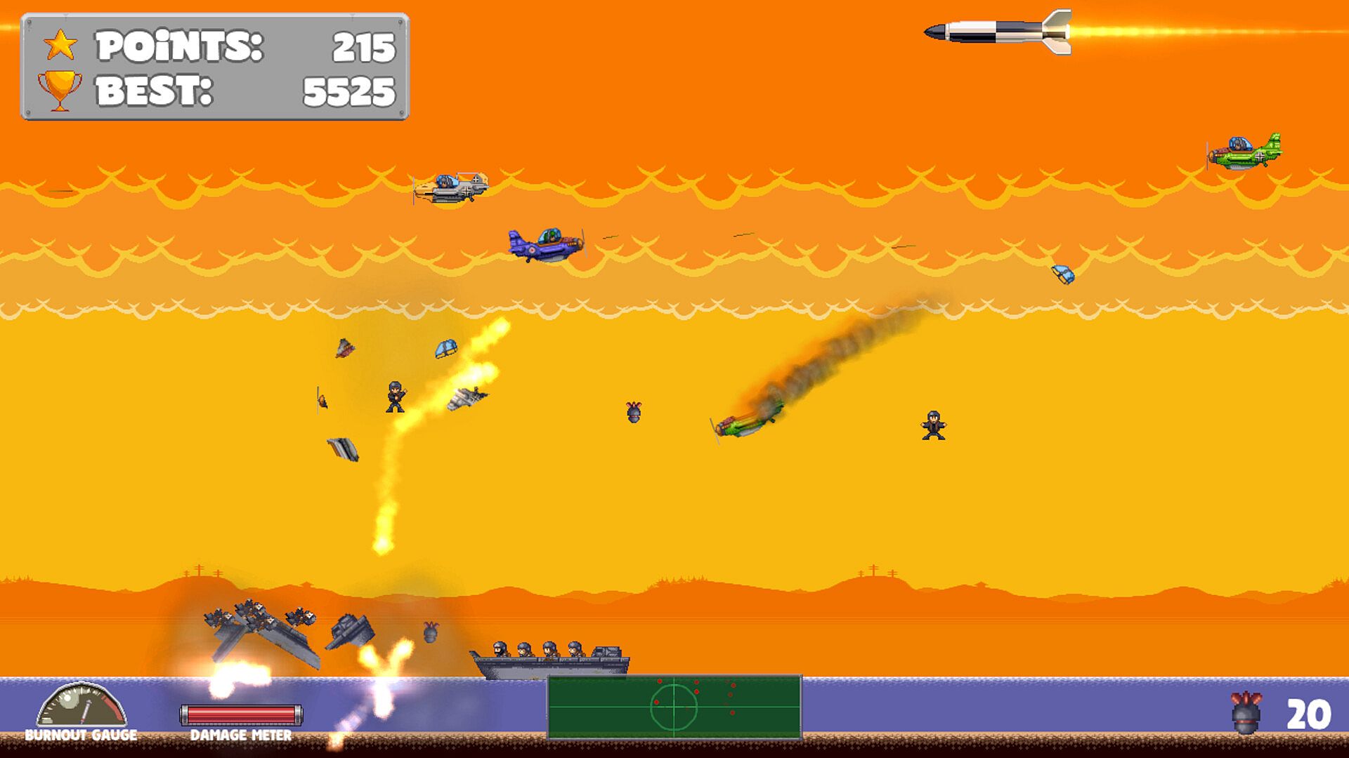Send enemy soldiers flying with strategically placed bombs or sending them diving for cover whilst strafing their encampments!