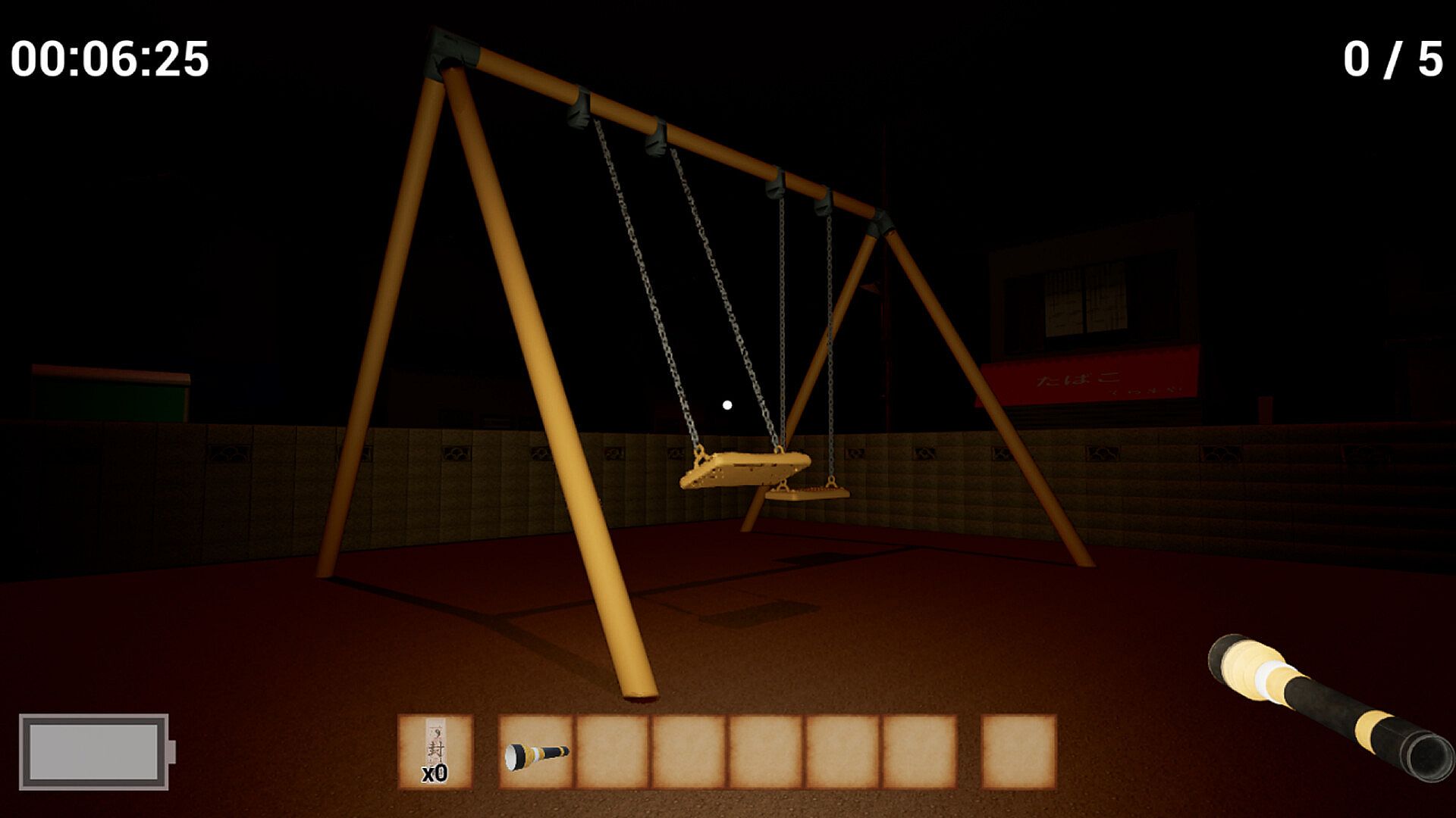 Players explore a dimly lit residential area with only a flashlight, avoiding wandering spirits while sealing supernatural phenomena to escape this otherworldly realm.