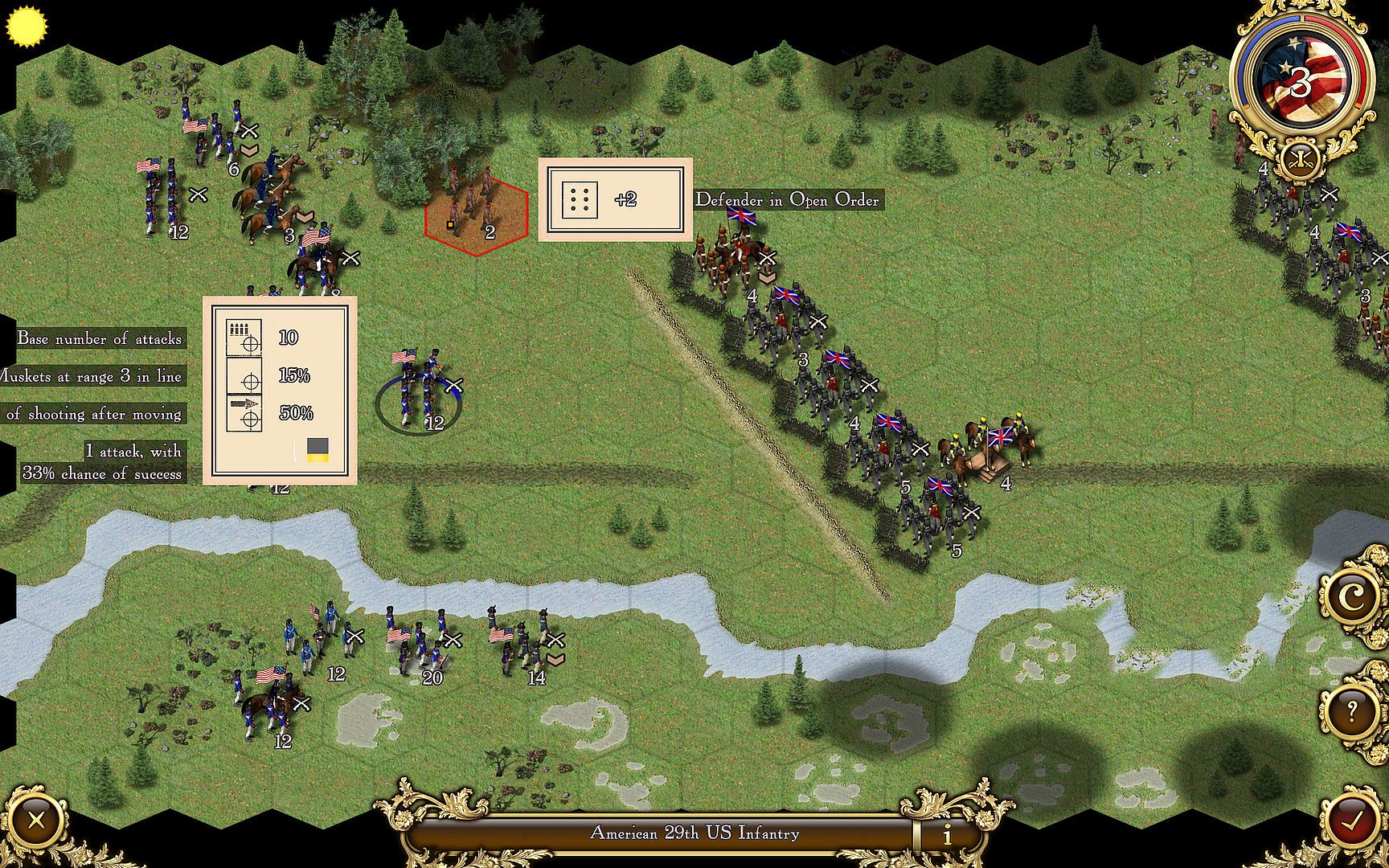 You will face tactical challenges with missions of varying size and objectives, and 34 different combat units. As with previous strategy games from HexWar, every effort has been made to capture the look and feel of the warfare methods, equipment and uniform of the day, and this title is no exception. In these battles players will also find the detailed and accurate maps, orders of battle, and named regiments from the well-loved Decision Games board game.