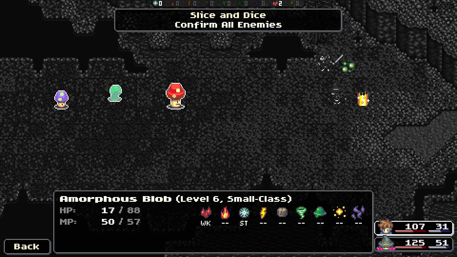 Turn-based combat with combo attacks. Hit an enemy with Pollinate and use it to spread Fireball.