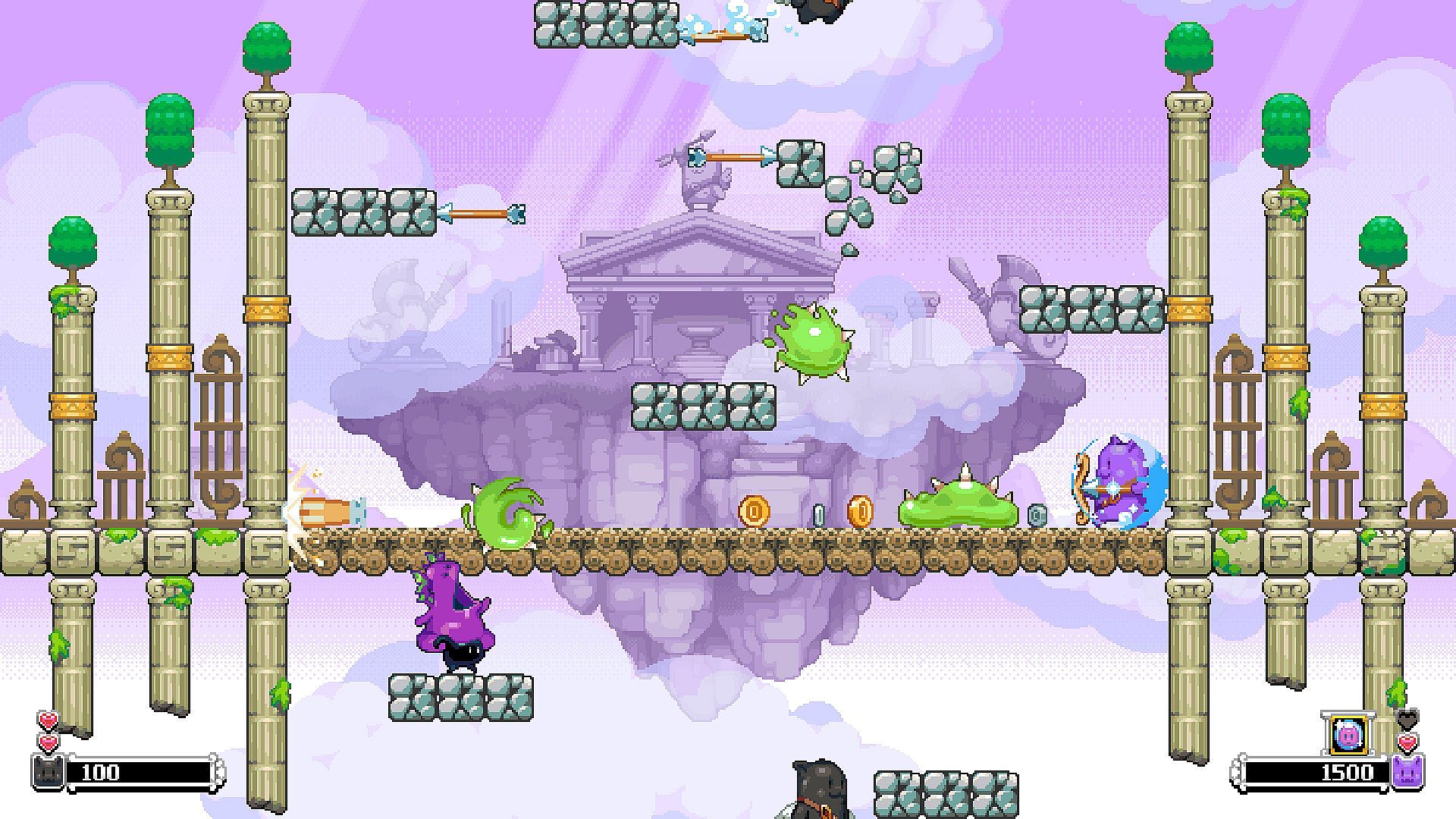 Twin Shot Deluxe is an arcade platform shooter where players defend their homeland from invaders using bows and arrows. Take aim at over 200+ brand new levels set across four worlds, each with unique challenges, bosses and enemies. Play solo or team up with friends in local co-op (1-4 players) or play competitively to see who will be crowned champion.