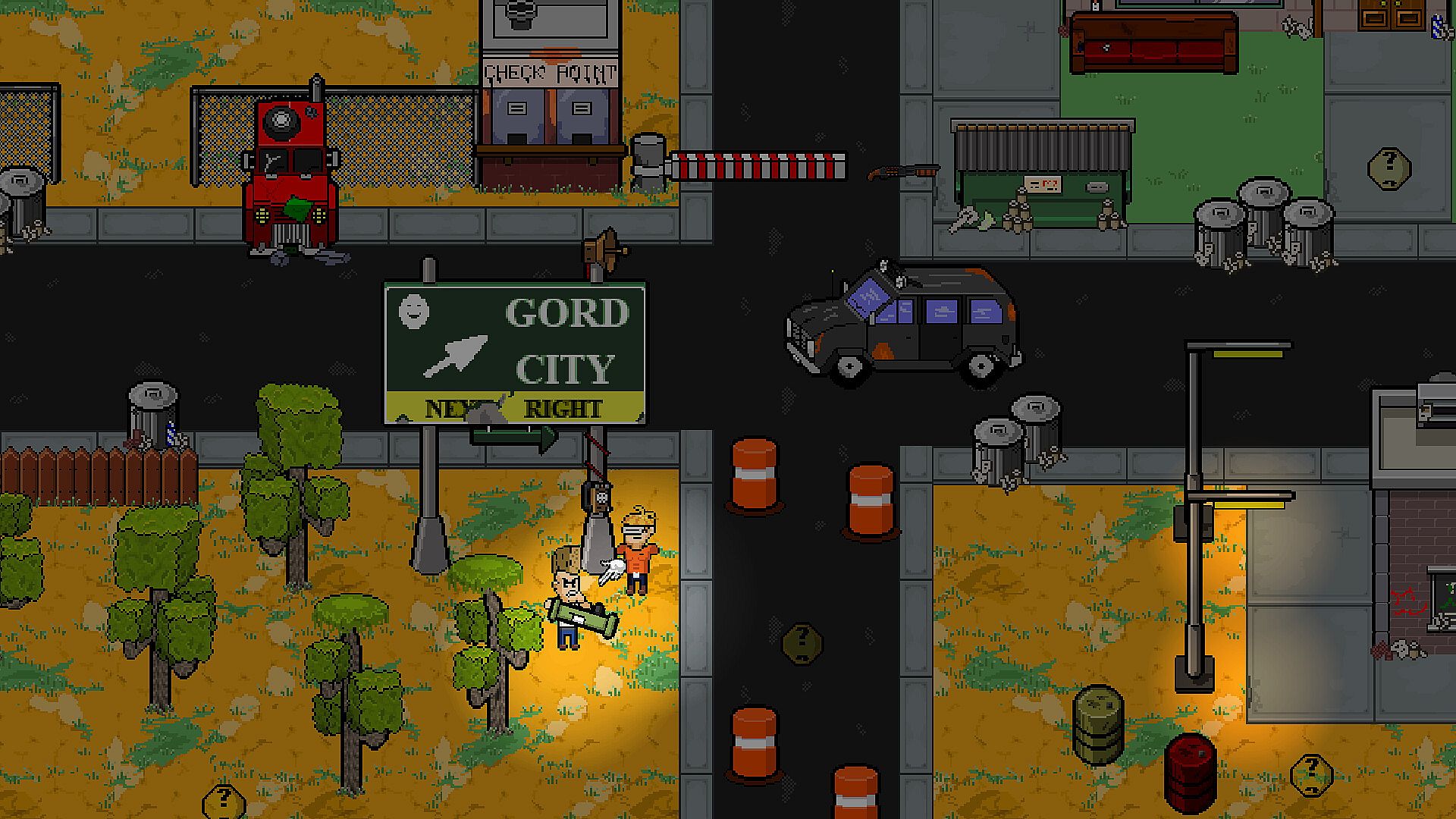 Art was inspired from the likes of older snes games such as Earthbound and FZERO, mixed with a healthy dose of Saturday morning cartoons such as Beavis and Butthead and King of the Hill.