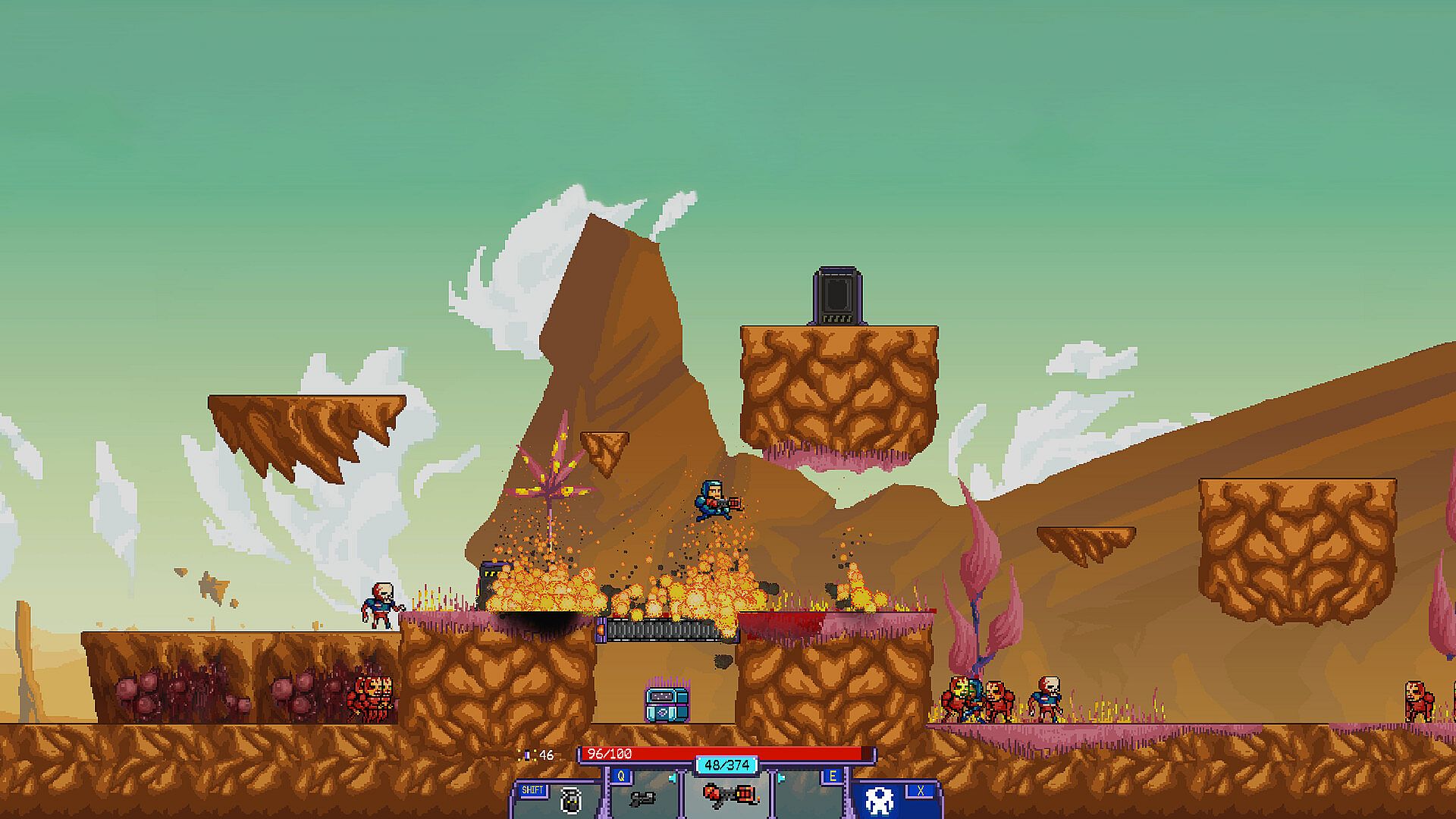 Transform between a human soldier and demonic entity to battle hordes of extraterrestrial abominations across procedurally generated alien hellscapes. This indie action game blends twin-stick gunplay with side-scrolling elements in a roguelite structure, where no-mouse controls deliver classic arcade feel. Master precision gunfire in human form and unleash demonic fury to chain kills amid shifting arenas filled with unpredictable enemies and bosses. Permanent upgrades and consumables enhance your arsenal for each run, while skill and choices shape unique outcomes. Quick-hit sessions with vibrant pixel art and retro beats fuel endless replays. Arcade enthusiasts crave this relentless chaos that demands form-switching mastery for survival.