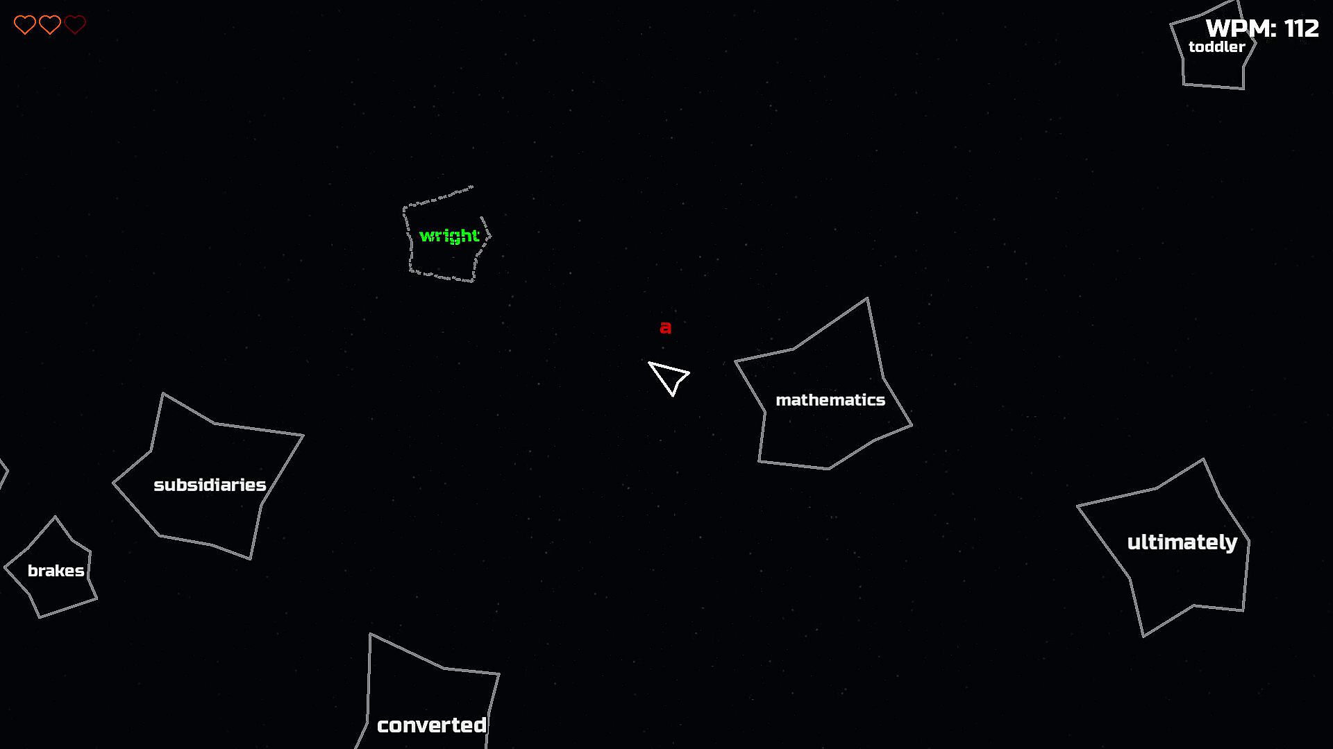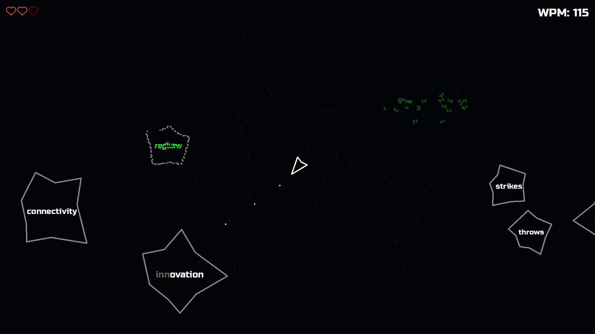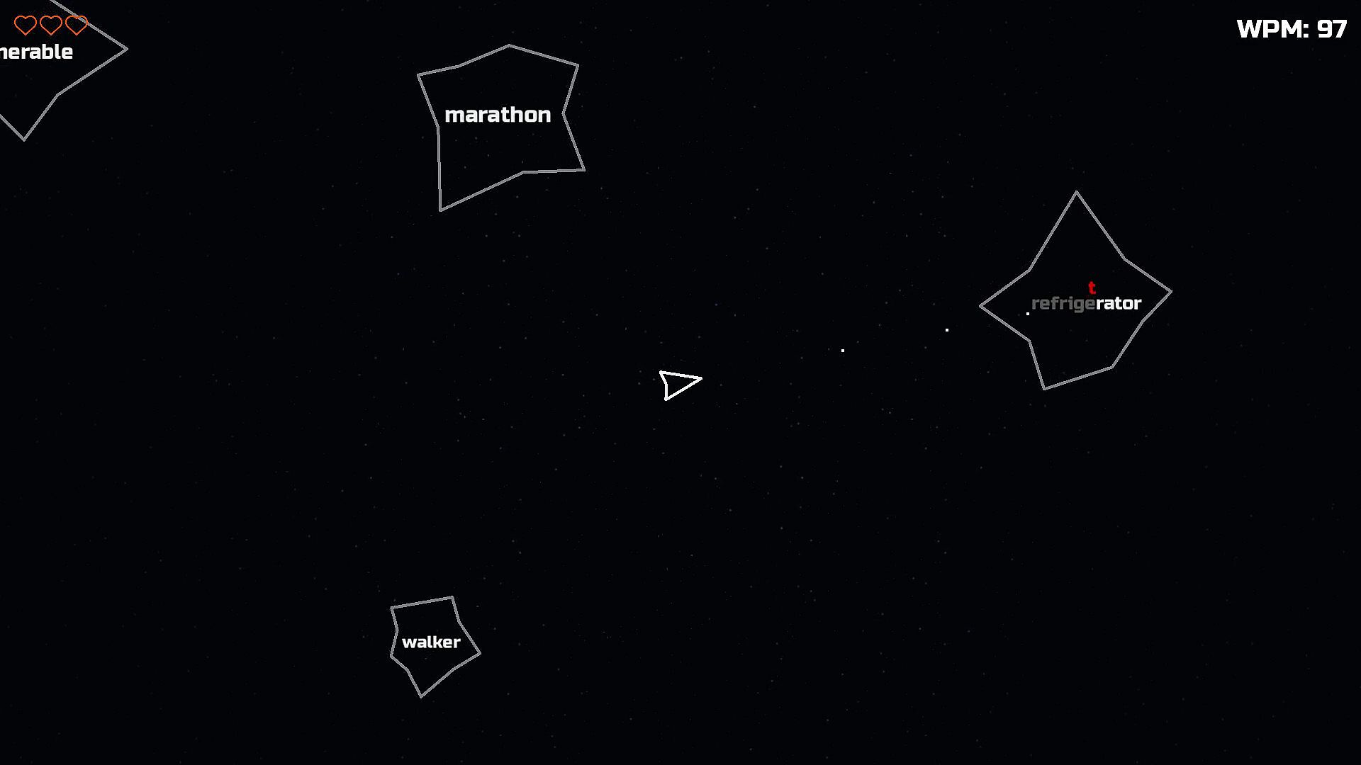 Typeoids is a fast arcade-style typing game inspired by the classic Asteroids.