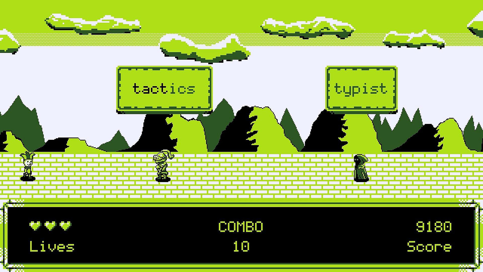 Typing with Jester is a typing game with a 8-Bit retro fourscale style. Imagine those classic handhelds had a keyboard and a game like this. Sounds awesome right?