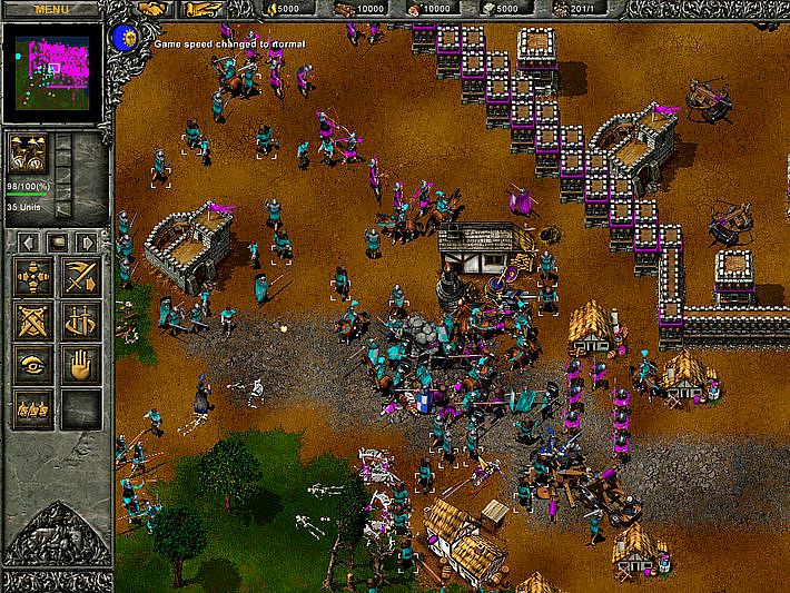 Tzar puts you at the heart of the battle of good versus evil. Set in the real-time fantasy world of Keanor, where the sword is the law of the land, it is up to you to stop the armies of evil. Recruit, train and command vast armies of Knights and Archers, and build fantastic weapons to smash enemy defenses. Train your Wizards to unleash their arcane powers against your foes, or conjure mighty Dragons, Jinni, and Undead to do your bidding. Can you carry the burden of the crown?