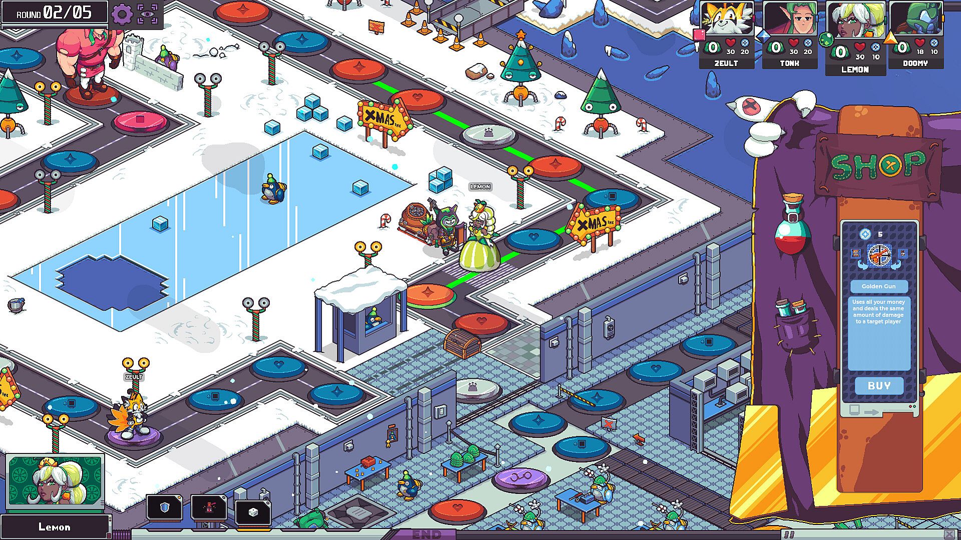 Your cards are more than just tools: they allow you to navigate the board, grant upgrades and sabotage your opponents. At each turn start, players receive a lootbox containing basic resources for their moves and, in the course of the match, they can direct their routes to find the mysterious Shopkeeper and buy cards of varying prices and rarities. Surprise is a constant factor andyou never know what crazy turns a match can take!