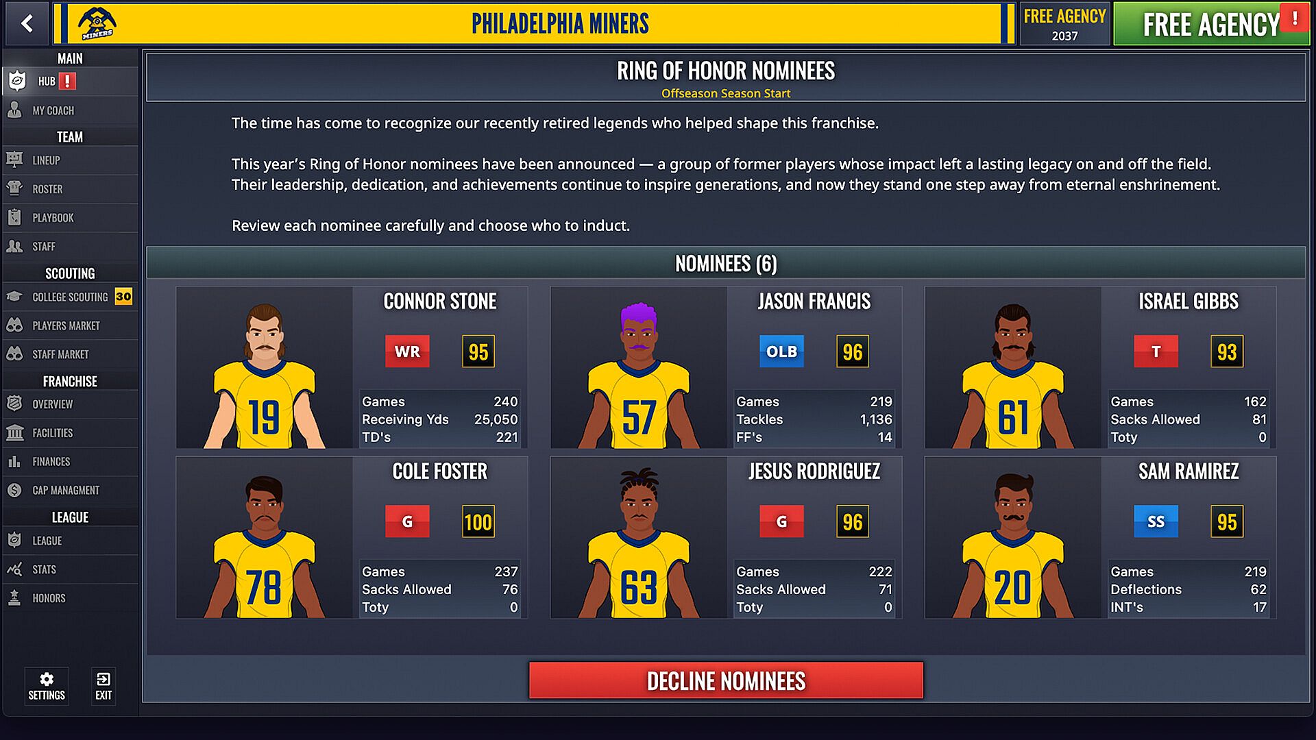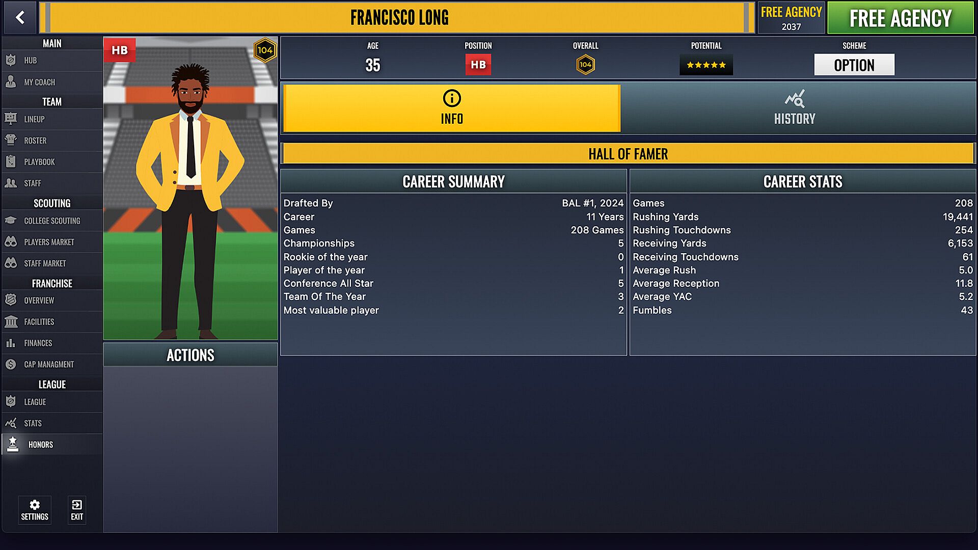 Awards and Hall of Fame Trackers: Monitor player award selections and celebrate long-term career achievements.