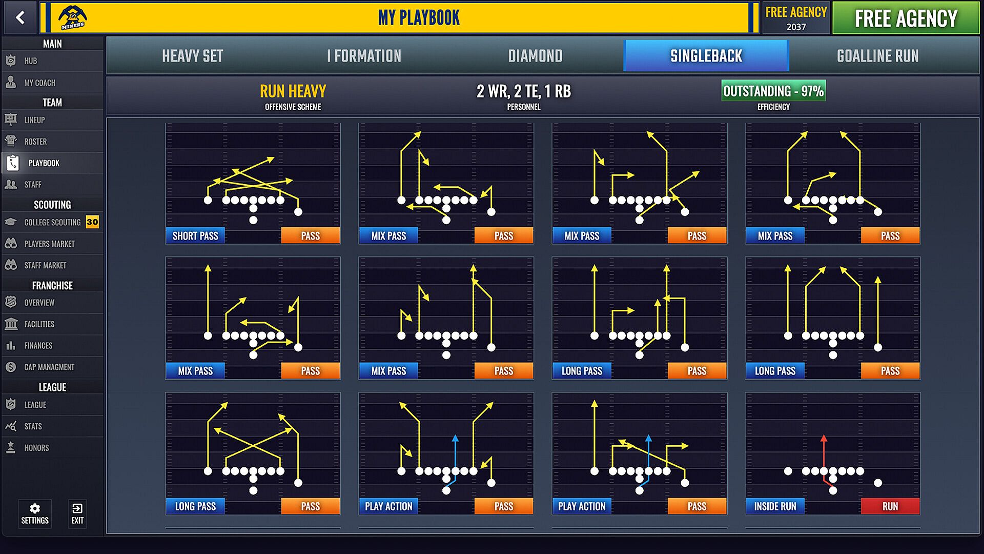 Formations & Strategy: Set your offensive scheme and build game plans around your unique offensive identity.