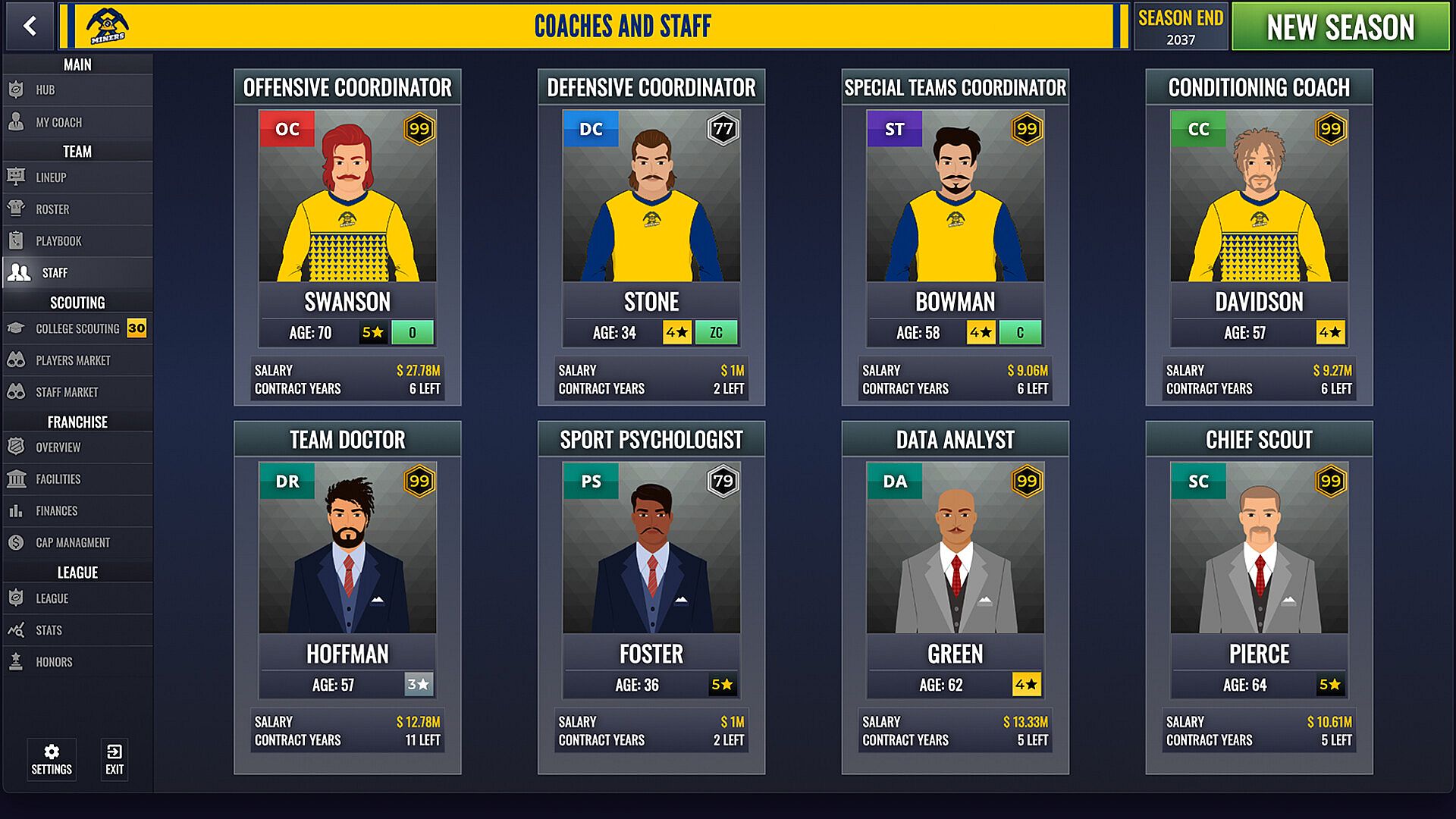 Step into the locker room and take control of a professional football franchise in Ultimate Pro Football Coach, a deep, strategic simulation where every decision matters: Scout hidden gems, sign superstar free agents, hire staff, manage finances, and navigate the pressure of ownership and fans as you build your football dynasty.