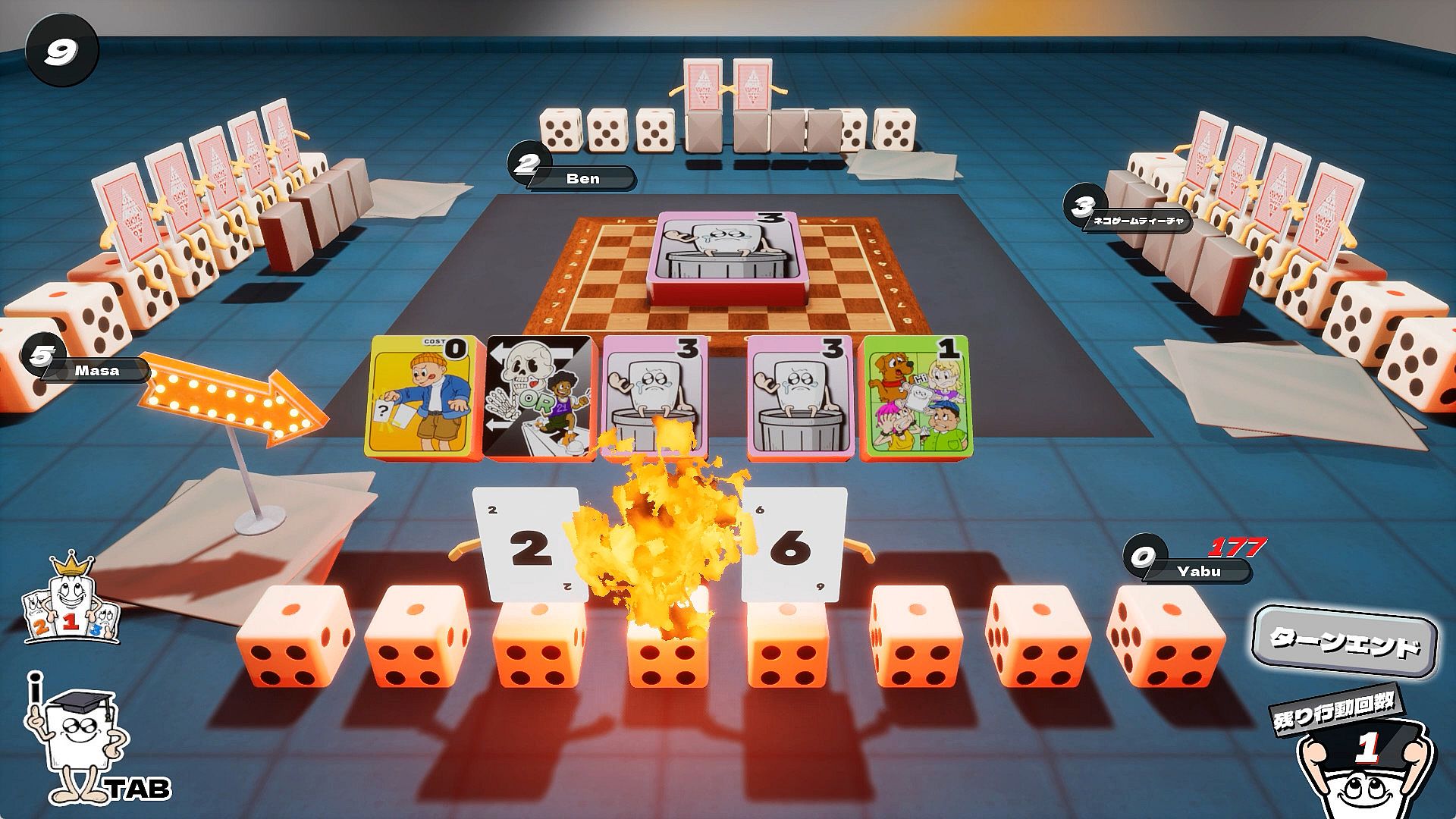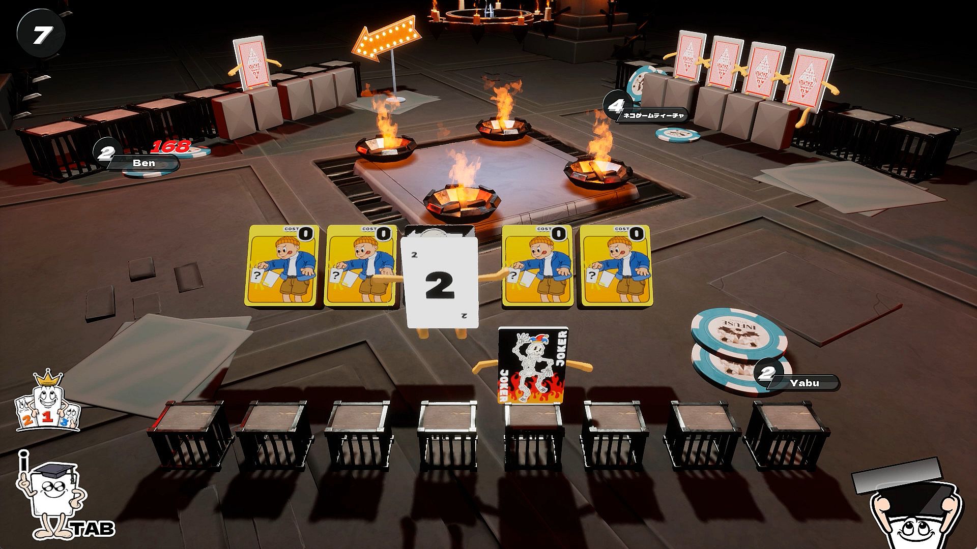 When the game starts, each player is first dealt a hand of five cards with hands and feet for some reason, and six ability tiles. In addition to "draw one card from the opponent's hand," the ability tiles also contain special effects that are not found in the regular Old Maid, such as "increase the opponent's hand" and "discard your hand.