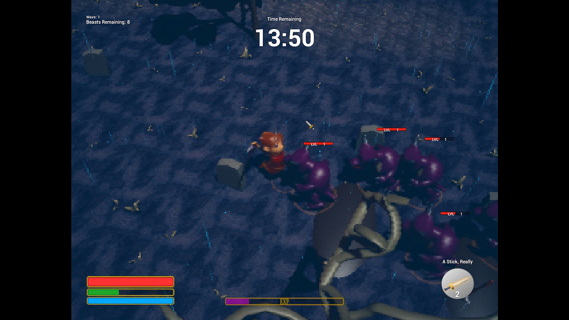 A top down ARPG / Roguelike heavily inspired by the Nintendo 64 era of graphics. Take charge against waves of monsters to reach the boss. Can you survive all 10 waves with careful specs into your Strength, Dexterity, Intelligence, (and lucky loot drops) or be forced to try, try, and try again?