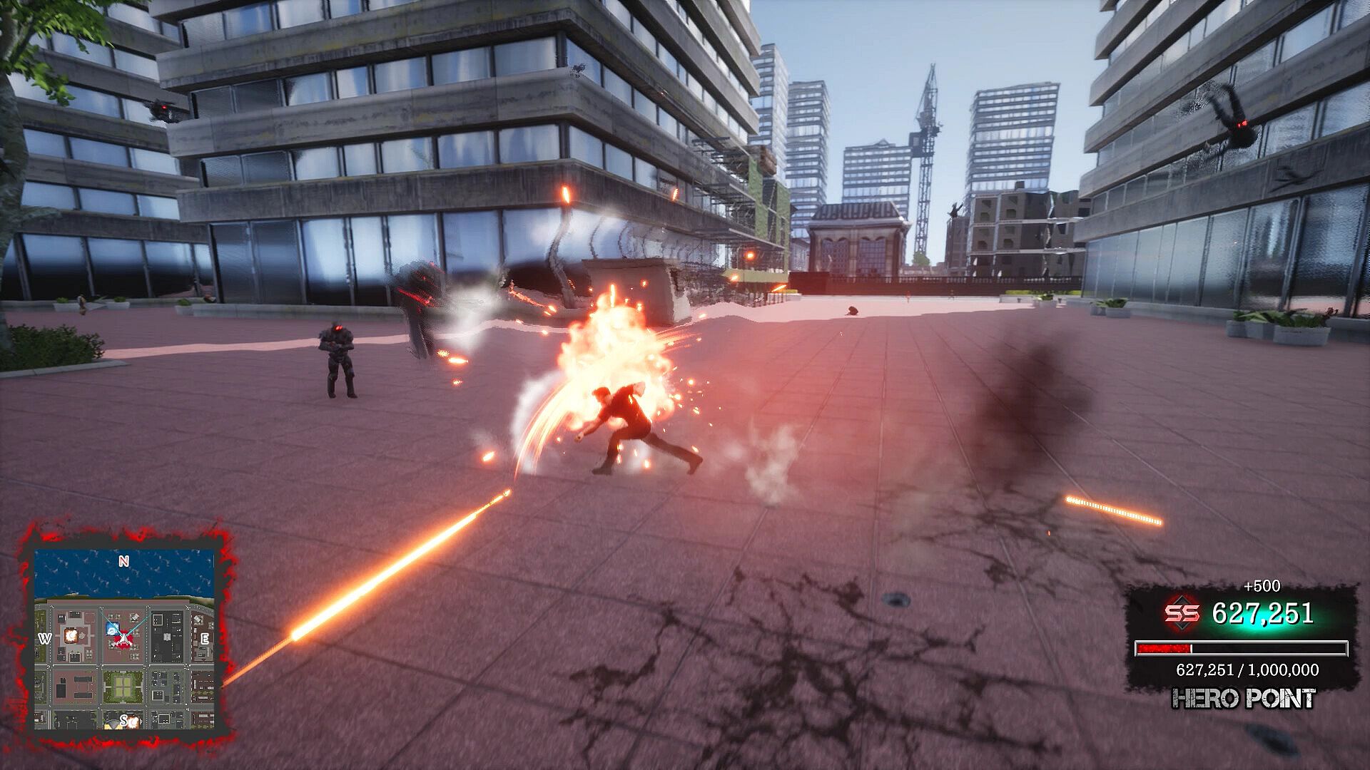 The battle with the boss is a dynamic high-speed mid-air battle. Protect the city from the bossʼs attacks, and counter strike to defeat him.Our free student project
