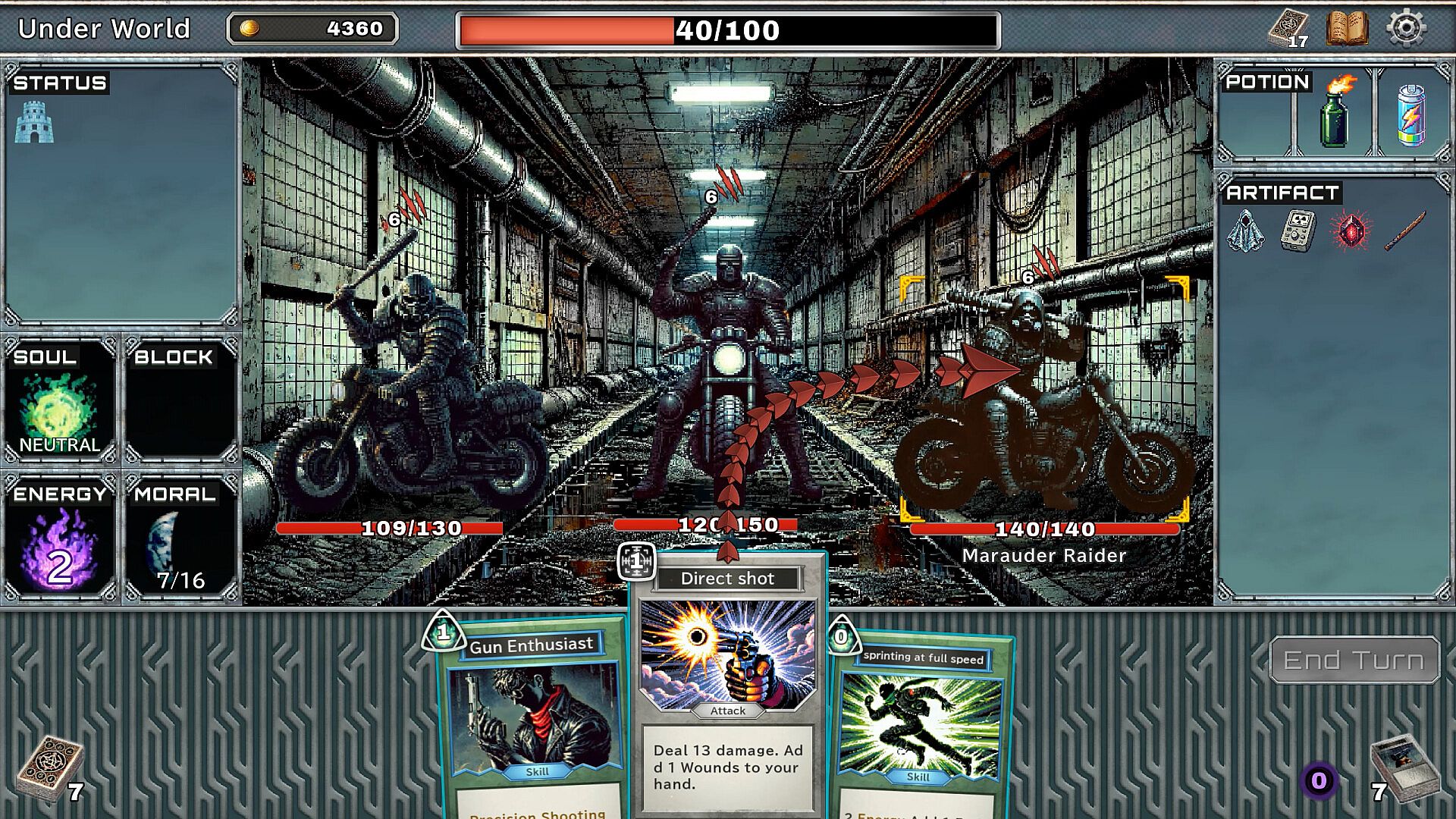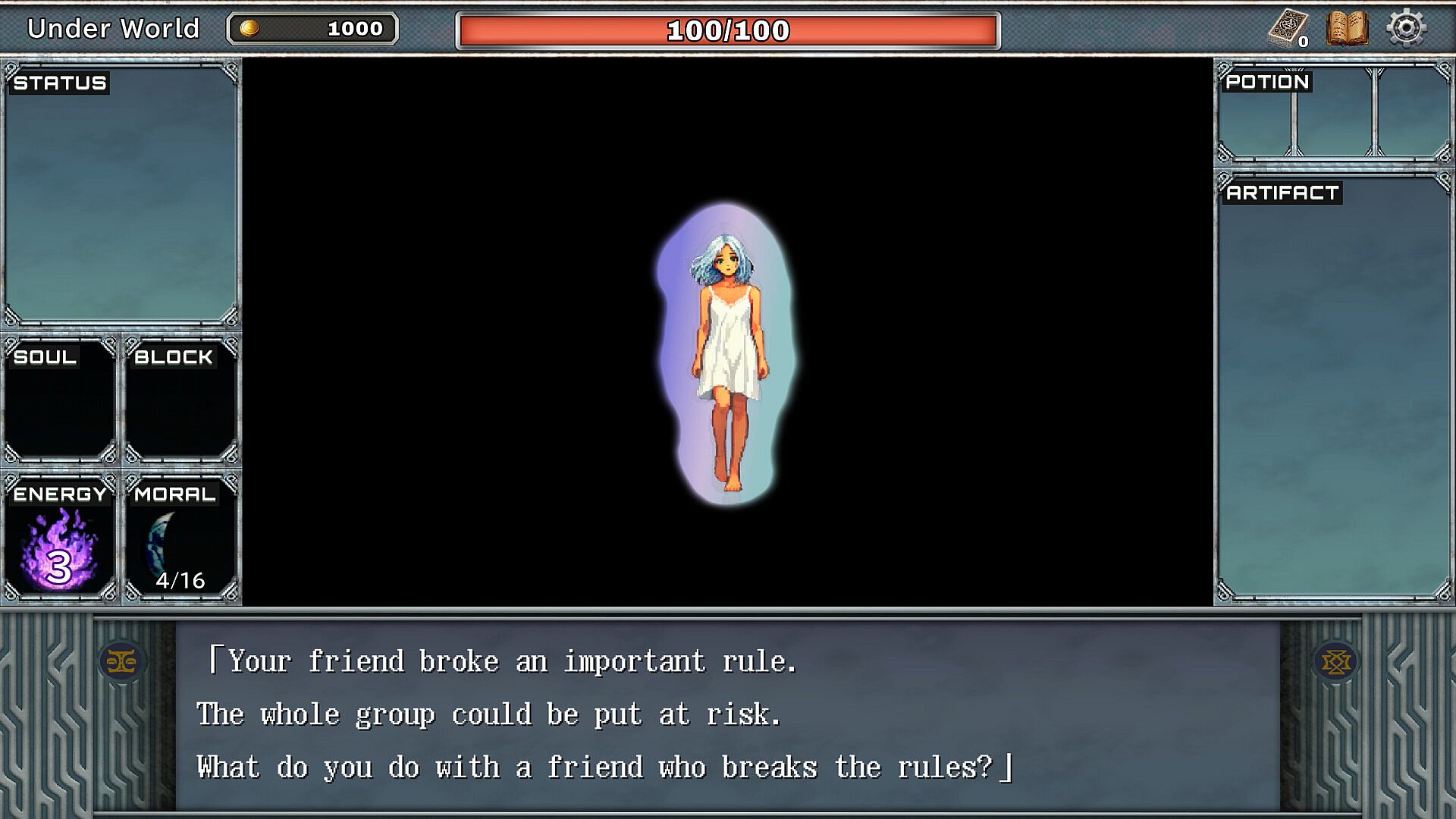 "UNDER WORLD" is a deck-building roguelite set in a post-war, devastated underground world. Build a unique deck by combining cards and items, defeat enemies, and delve deeper into the underground.