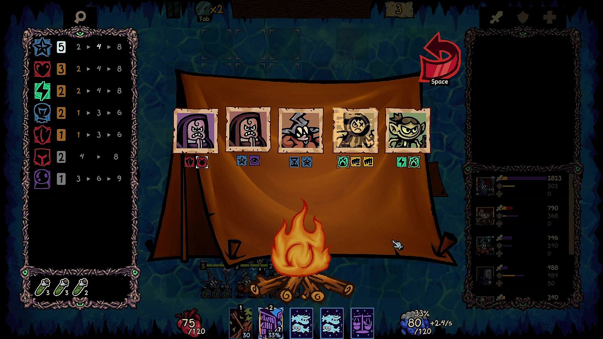 • Draft a team of characters, each enhanced with random Traits. Matching Traits between characters grants further bonuses to your team.