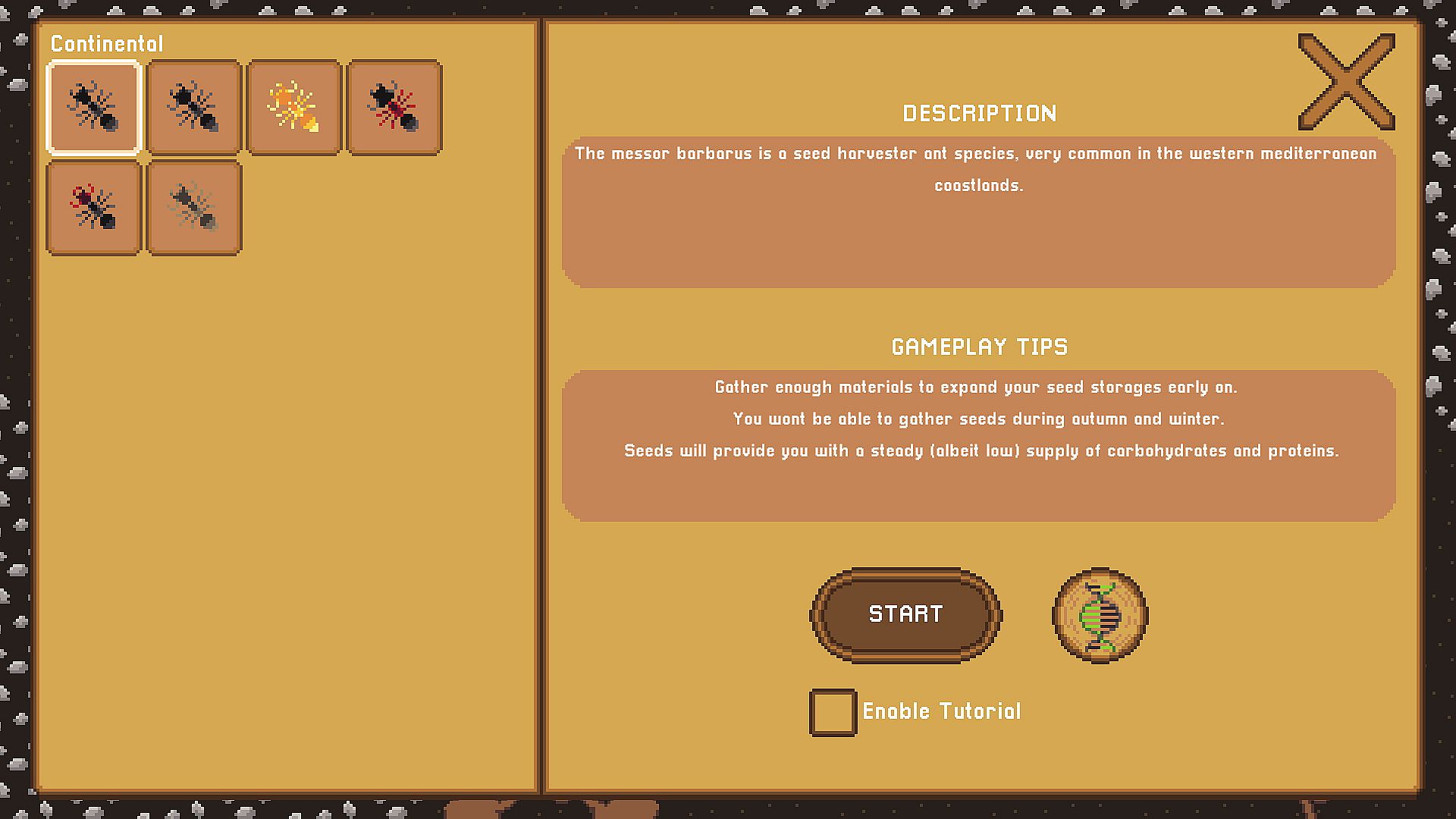 - Permadeath - How far can you lead your colony before it succumbs? Will you risk another year or reproduce as soon as possible to avoid uncertain doom?