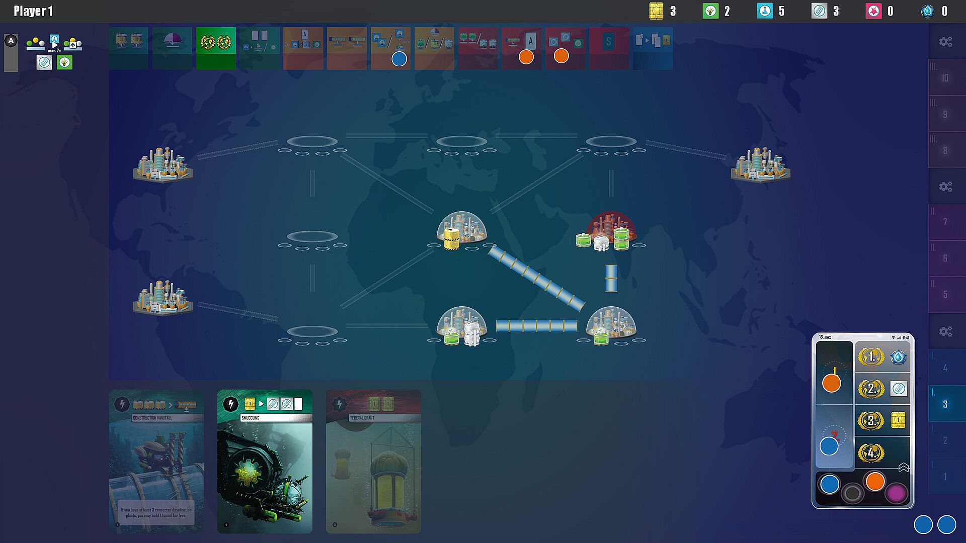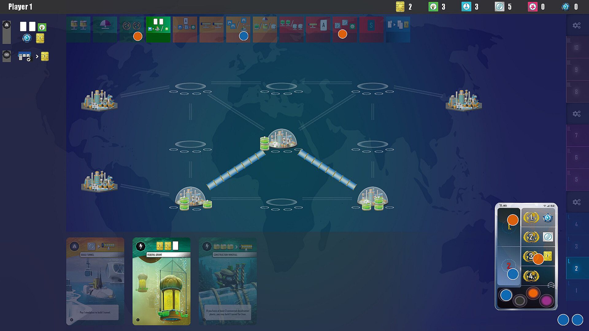 In Underwater Cities, players represent the most powerful brains in the world - brains nominated due to the overpopulation of Earth to establish the best and most livable underwater areas possible.