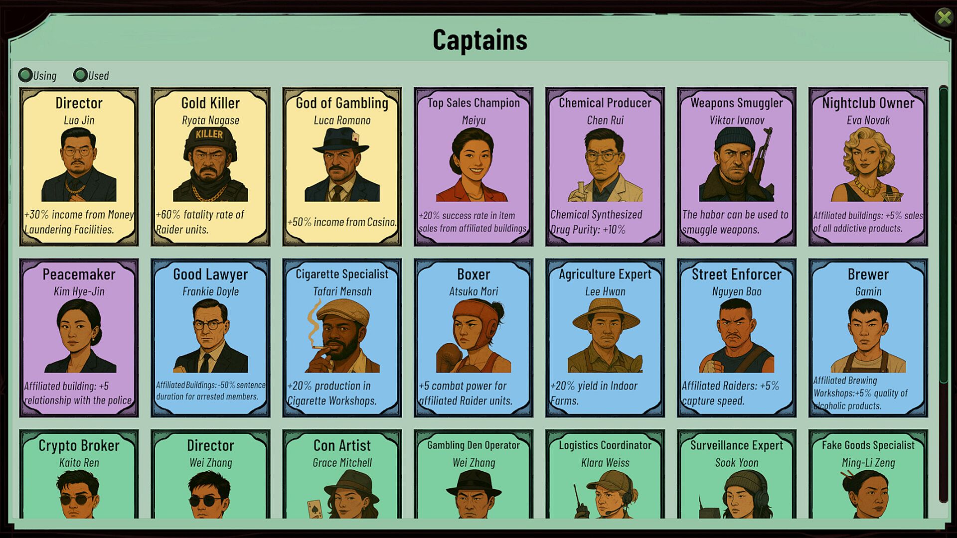 Choose from historically-inspired criminal organizations and shape a unique faction. Each archetype comes with its own ideology tree and strategic bonuses that define your path to dominance.