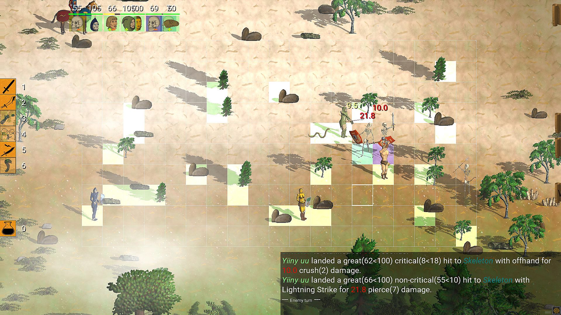 Fight men and monsters alike in tactical turn based combat. Different enemies provide you with diverse challenges throughout your journey. Arise victorious or perish in the sands of