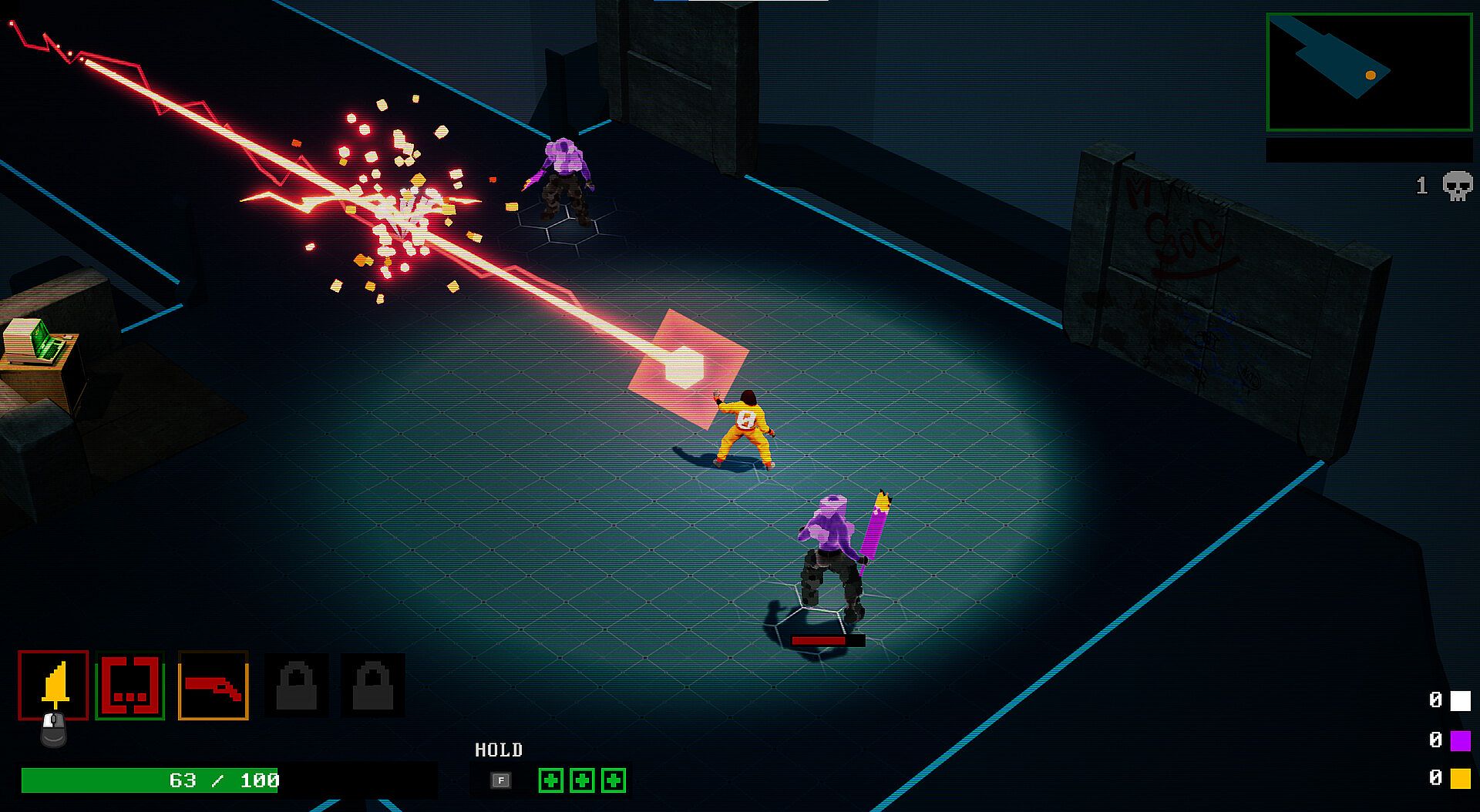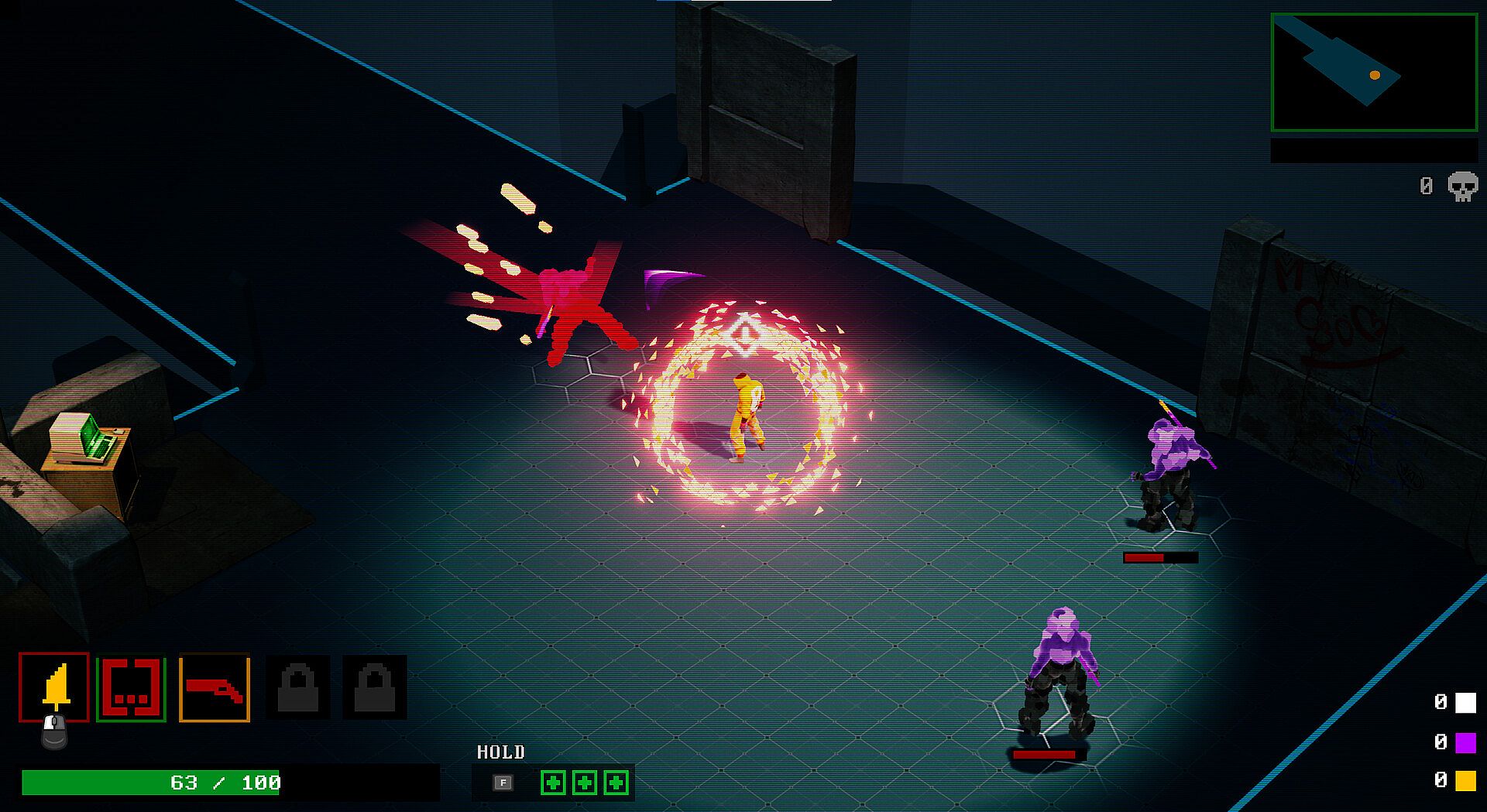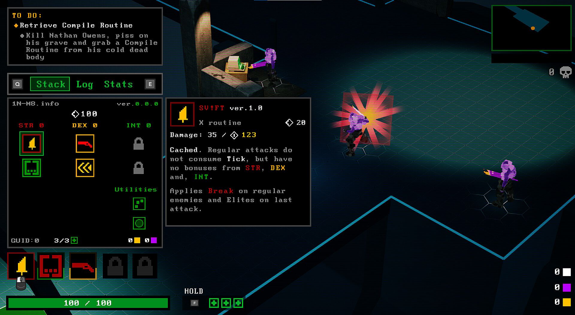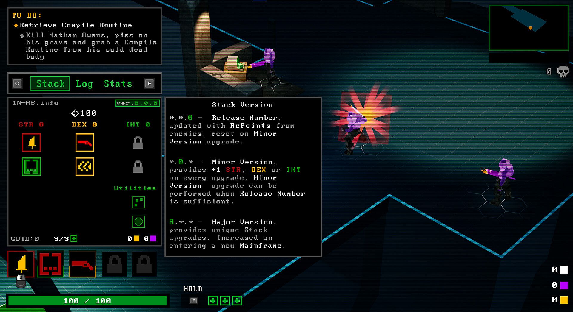 • Forge your personal codebase bit by bit, upgrade your 1N-M8 stack, and unlock permanent upgrades to change the way you fight and reach new areas of the PIT