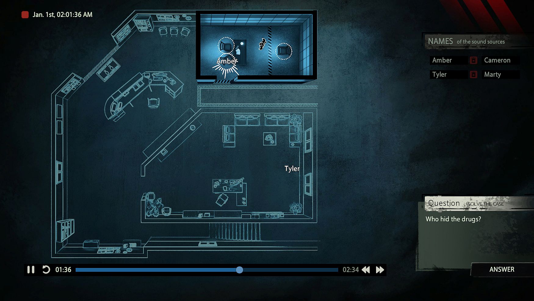 Step through time as you use our device to eavesdrop on conversations from past crime scenes. Every clue, every move, and every motive will be presented in the form of audio. Rather than controlling any one character, you only need listen to their conversations, following along as the story evolves. Use the information you hear to match names to voices and determine how everything (and everyone) is related. Can you discover the truth?