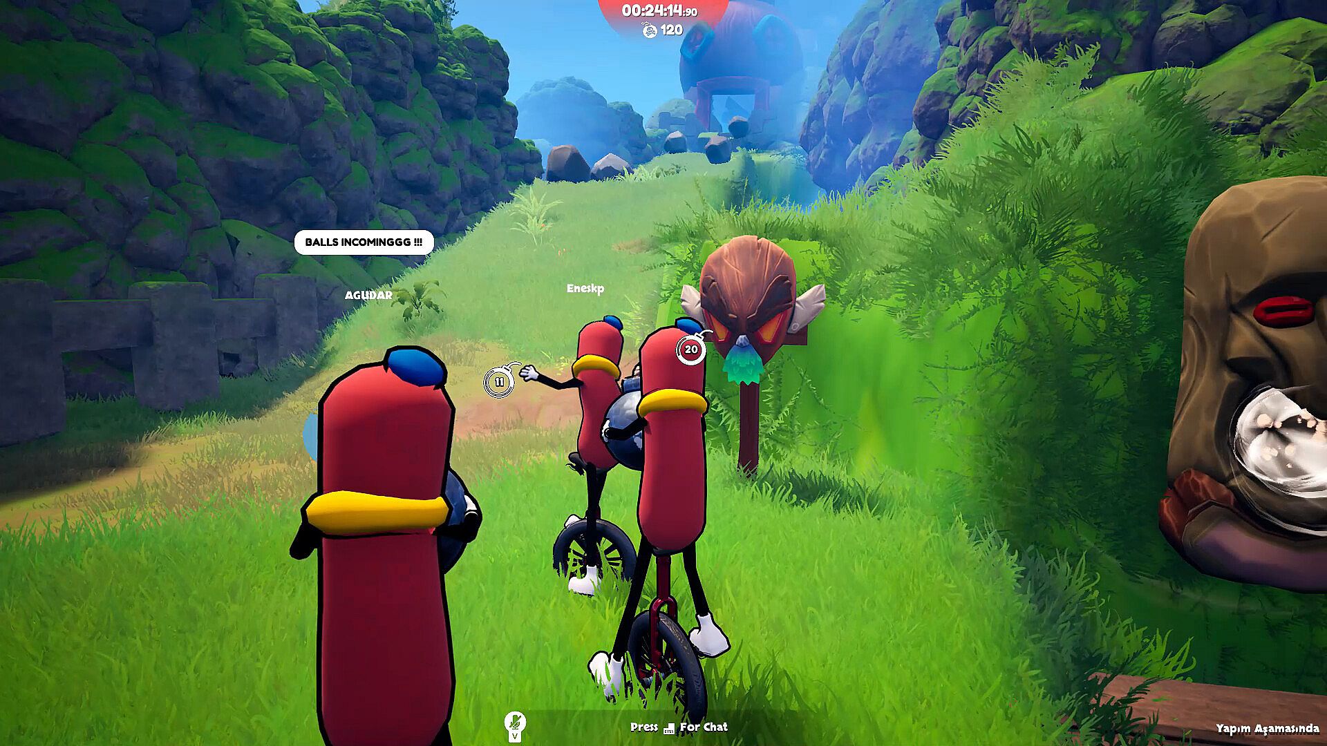 Are you ready for a physics-based chaos experience with 2-4 of your friends? Your mission is to deliver a ticking bomb to the mountain peak before it blows! But there’s a catch... You’re all sausages, and you only have unicycles to get around! Don’t drop the bomb, or you’re toast!