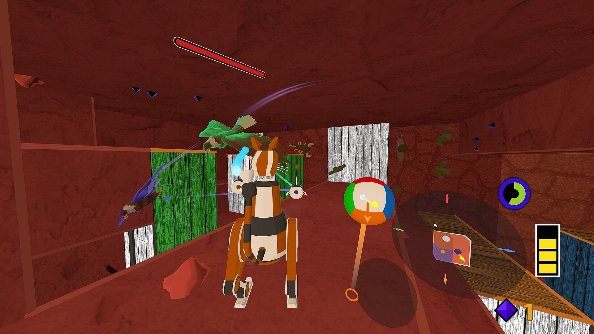 Unleash your cat instincts as Gumbot, tackling physics and critters alike! Leap and scramble up ledges, zoom with rocket parkour, shift gravity at will, and wield curious artifacts and dreamlike powers.